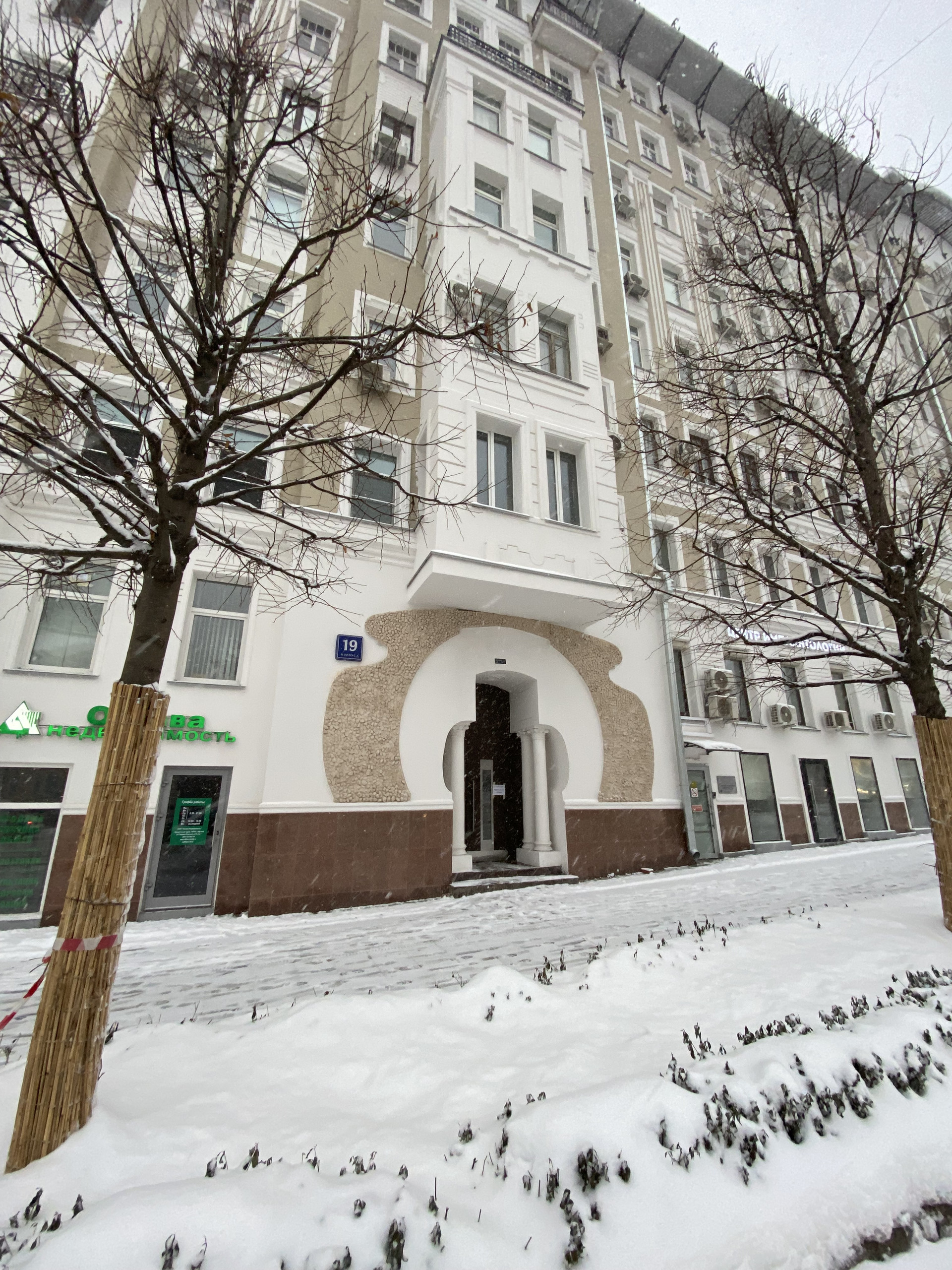 Произведена реставрация фасадов и сейчас ведутся работы мест общего пользования в доме.