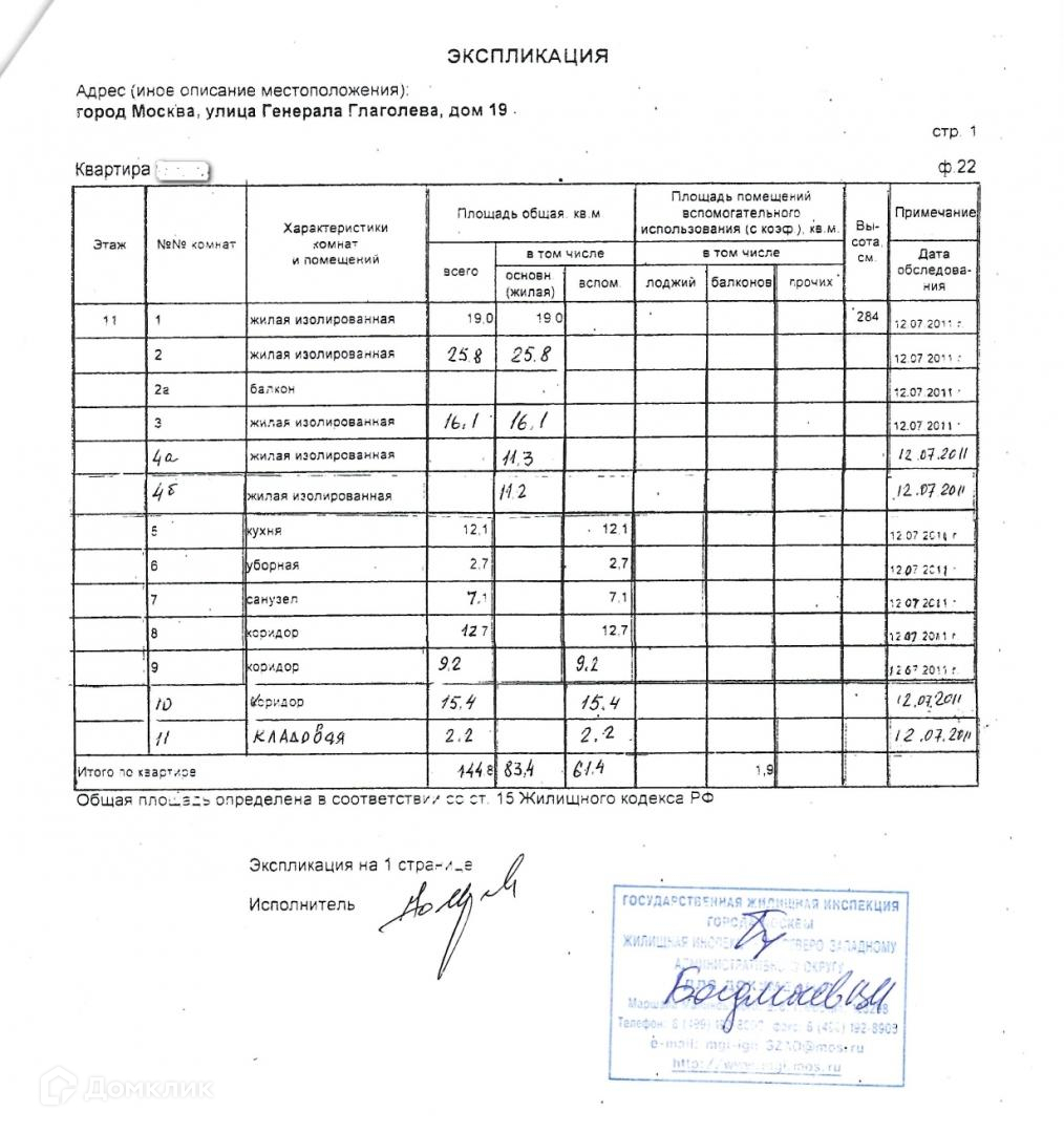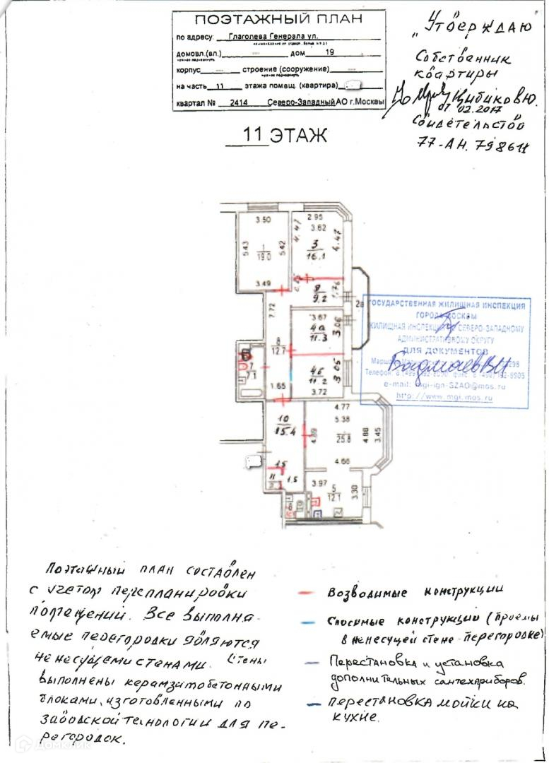 5-комнатная квартира, 144.8 м2, этаж 11 / 17, на продажу в Москве, улица Генерала Глаголева, 19