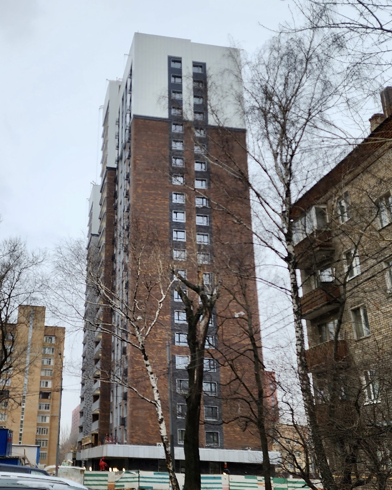 Дом на финишной стадии готовности, уже оборудована придомовая территория, завершается внутренняя отделка, строители снимают ограждение.