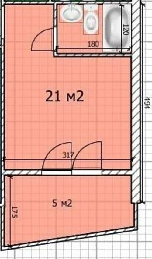Общая площадь 21 м2