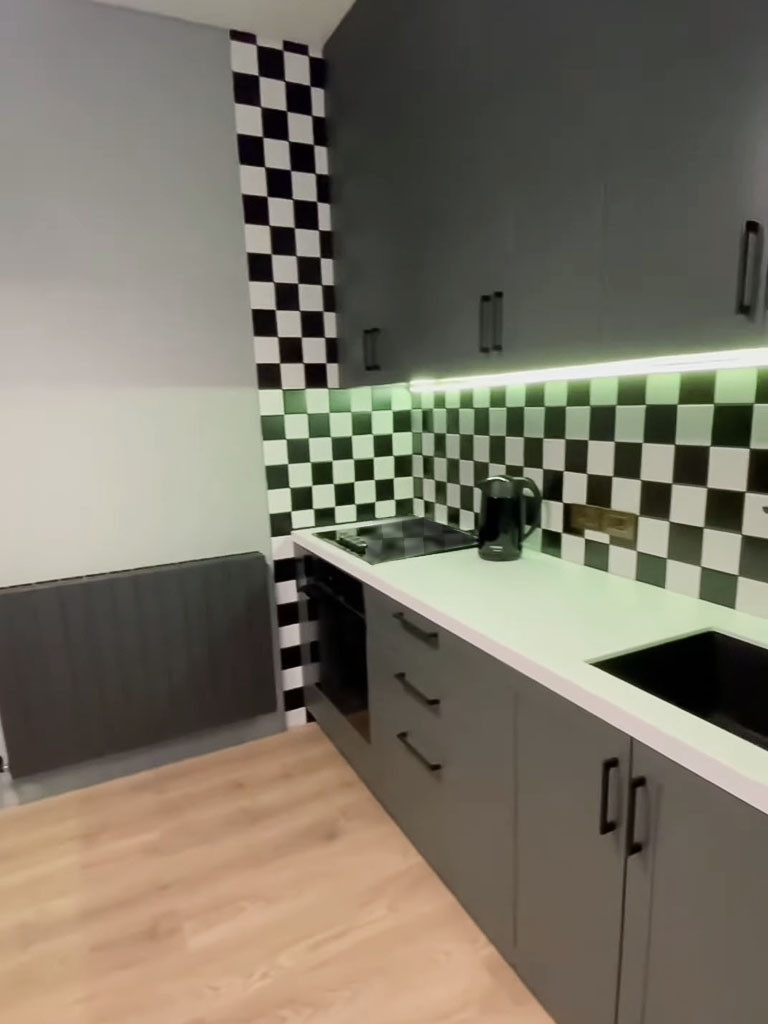 Квартира на 9-м этаже в 28-ми этажном доме. Дом сдан в 2022году. Площадь квартиры – 43 кв.м. Планировка – большая кухня 16 кв.м., спальня – 15 кв.м., санузел совмещенный. В квартире сделан качественный евроремонт. Состояние – заходи и живи!