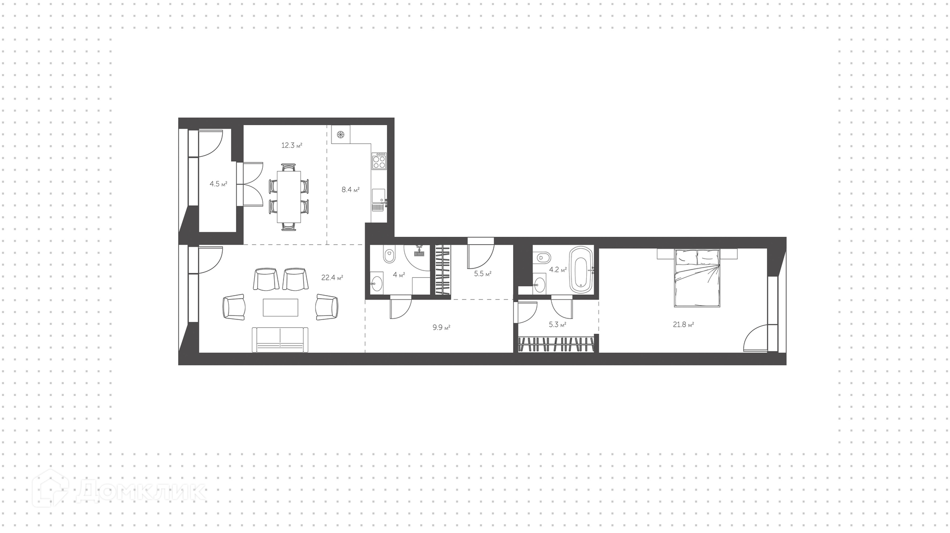 ID 236 311. Просторная квартира площадью 98 м² в комплексе премиум-класса «Садовые кварталы». Квартира без отделки расположена на 10-м этаже в корпусе 2.10.1. Функциональная планировка, можно обустроить кухню-гостиную, мастер-спальню с собственной ванной, гостевой санузел, прихожую, спроектирован выход на балкон. Благодаря панорамным окнам пространство наполнено естественным светом, открываются виды на две стороны света.