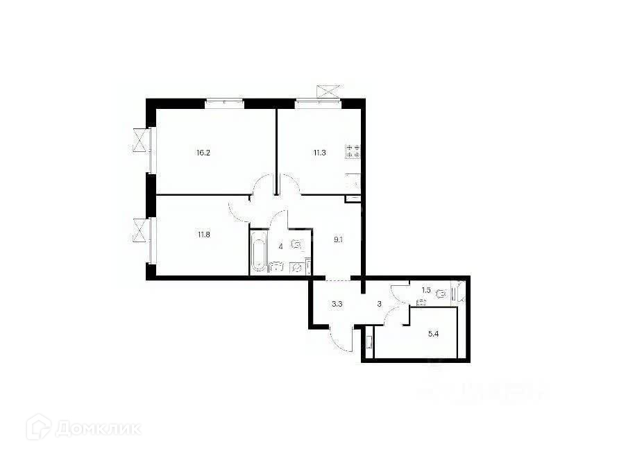 3) Два санузла, отделка от застройщика