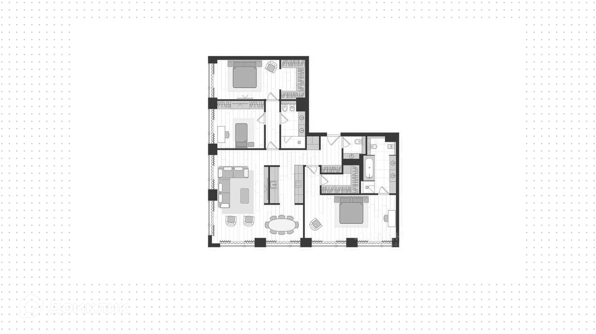 ID 221 866. Квартира площадью 132,9 м² в комплексе премиум-класса Prime Park с презентабельной входной группой от британского бюро Dyer. Угловая квартира с предчистовой отделкой whitebox, расположена на 7 этаже корпуса R3, из окон открывается вид на «Авиапарк» и во внутренний двор.