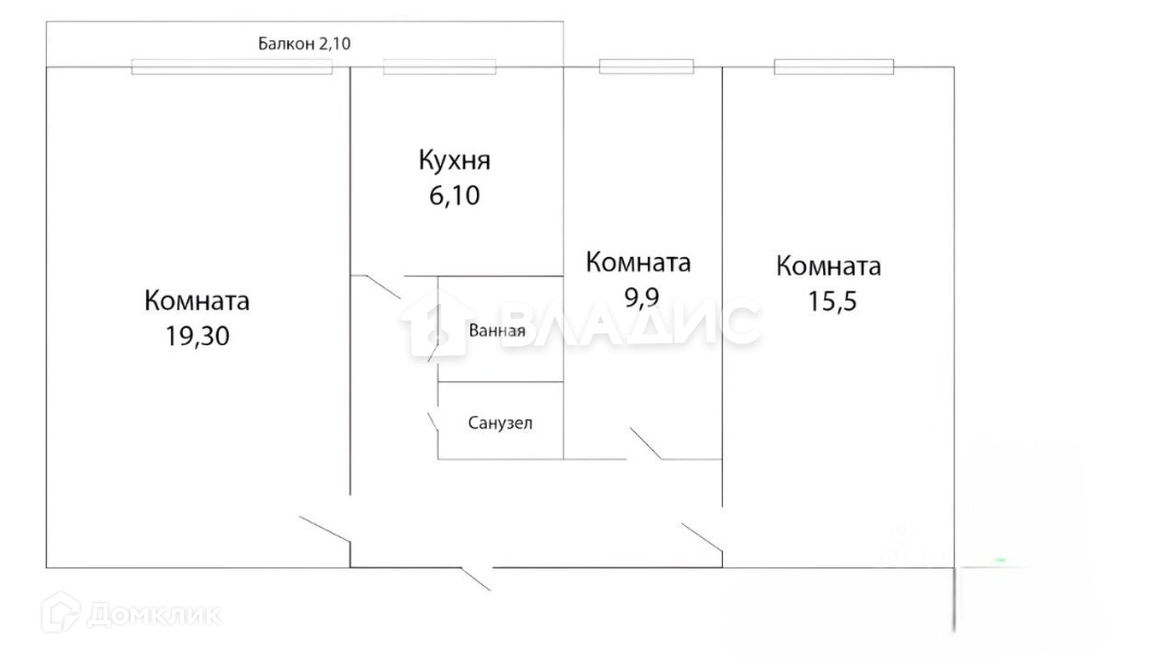 Общая площадь 62.7 м2