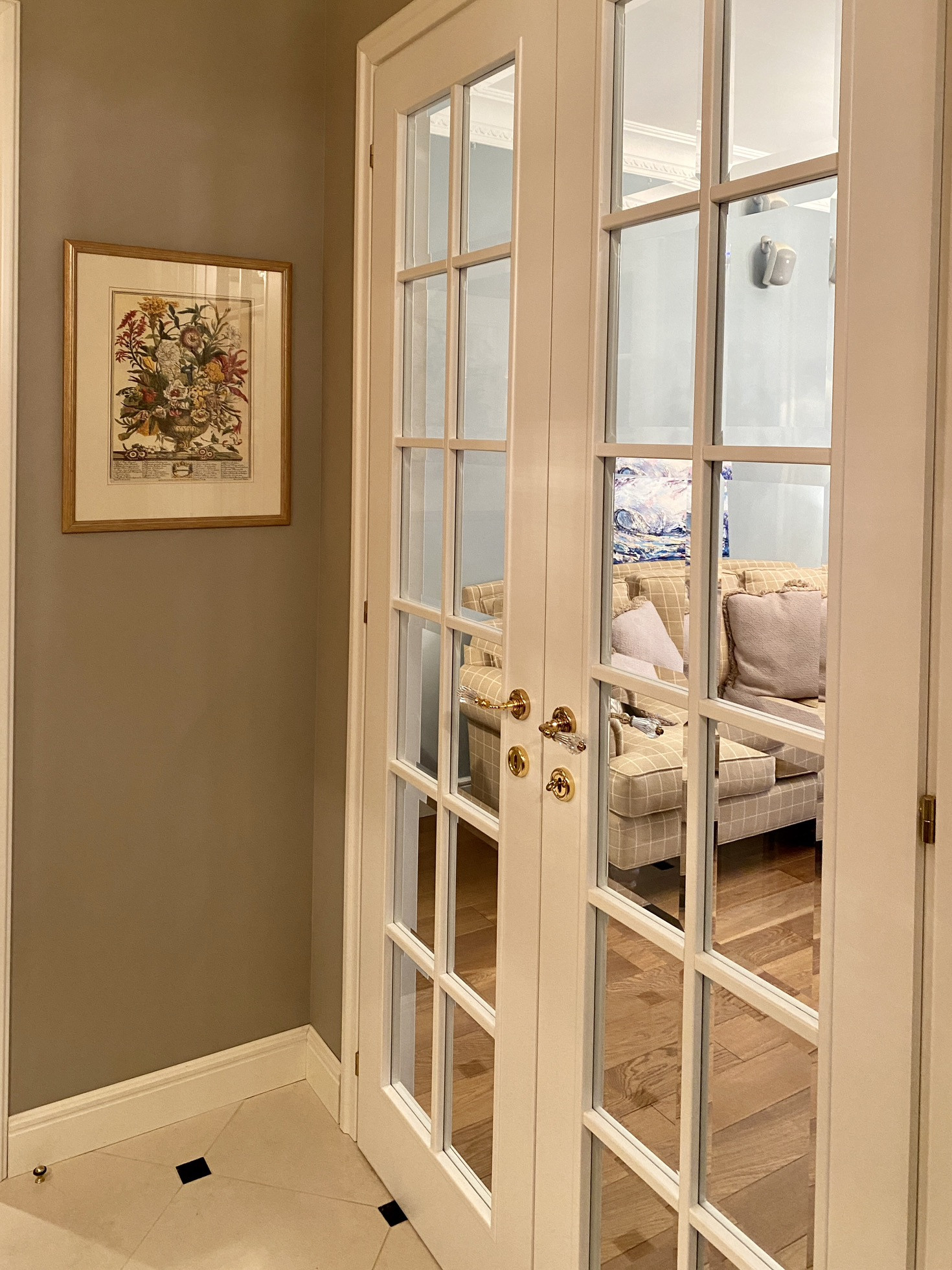 Из техники: встроенные холодильник Liebherr, посудомоечная машина, духовой шкаф, микроволновка - все Bosch. Измельчитель пищевых отходов Insinkerator. Кухня Scavolini, сантехника Villeroy&Boch, есть бойлер на 80л на время сезонного отключения горячей воды, а также система Нептун от протечек воды. Использованы отделочные материалы Little Green, Sanderson, натуральные ткани на портьерах и прочих тканевых элементах.