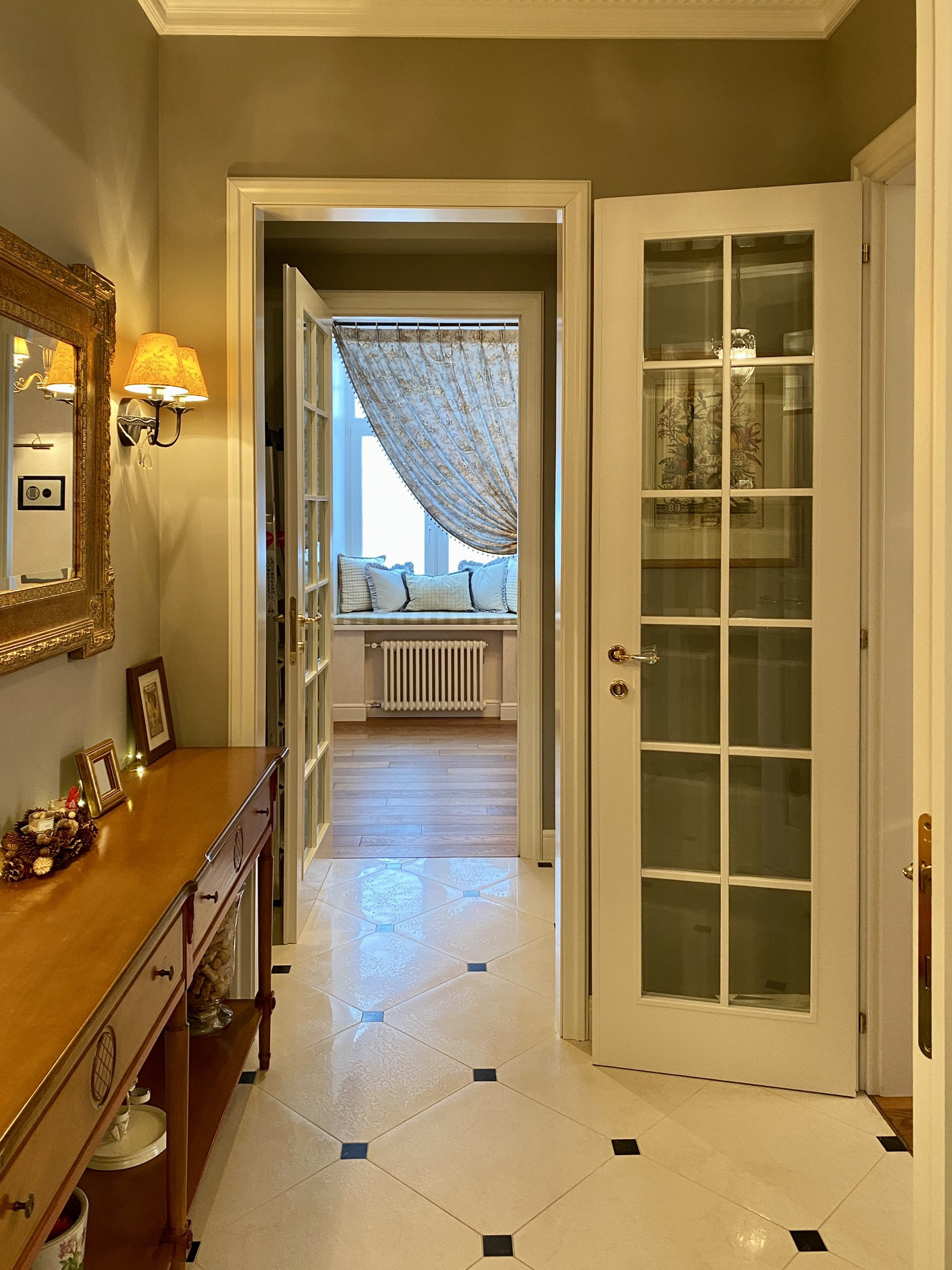 Теплые полы везде, где плитка. Полы - массивная доска.