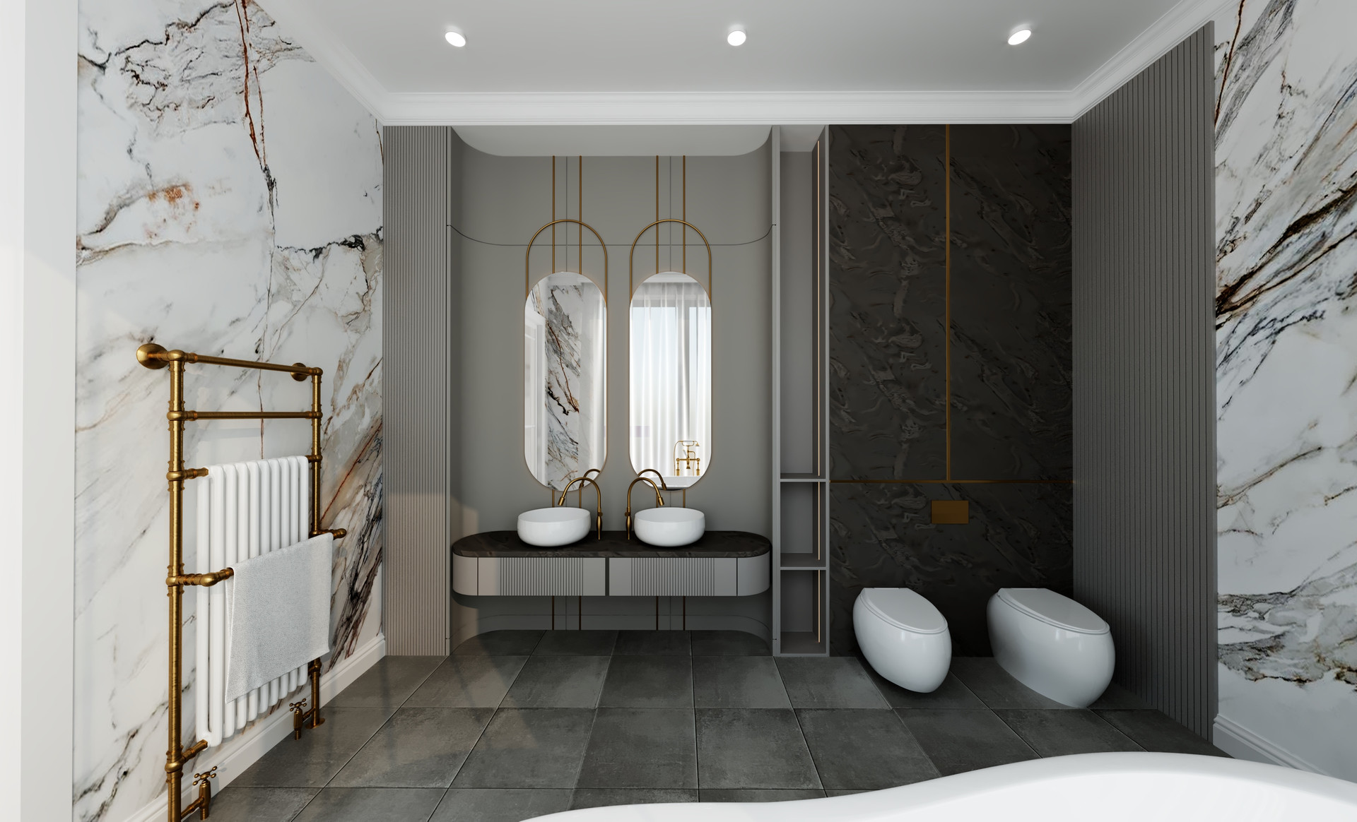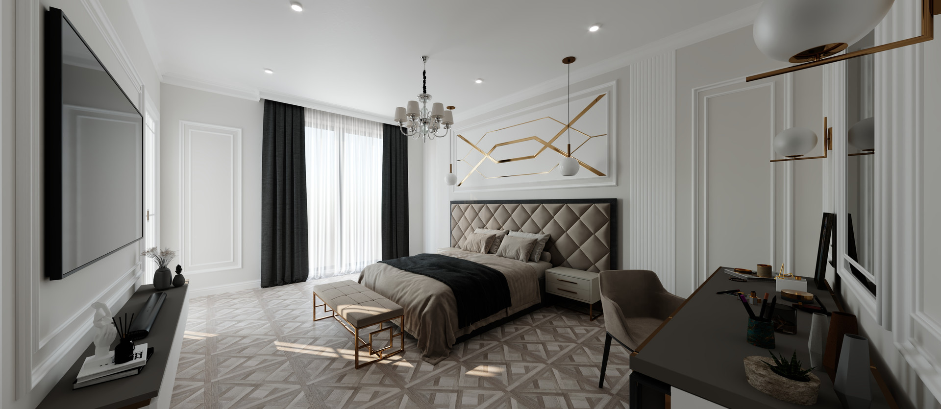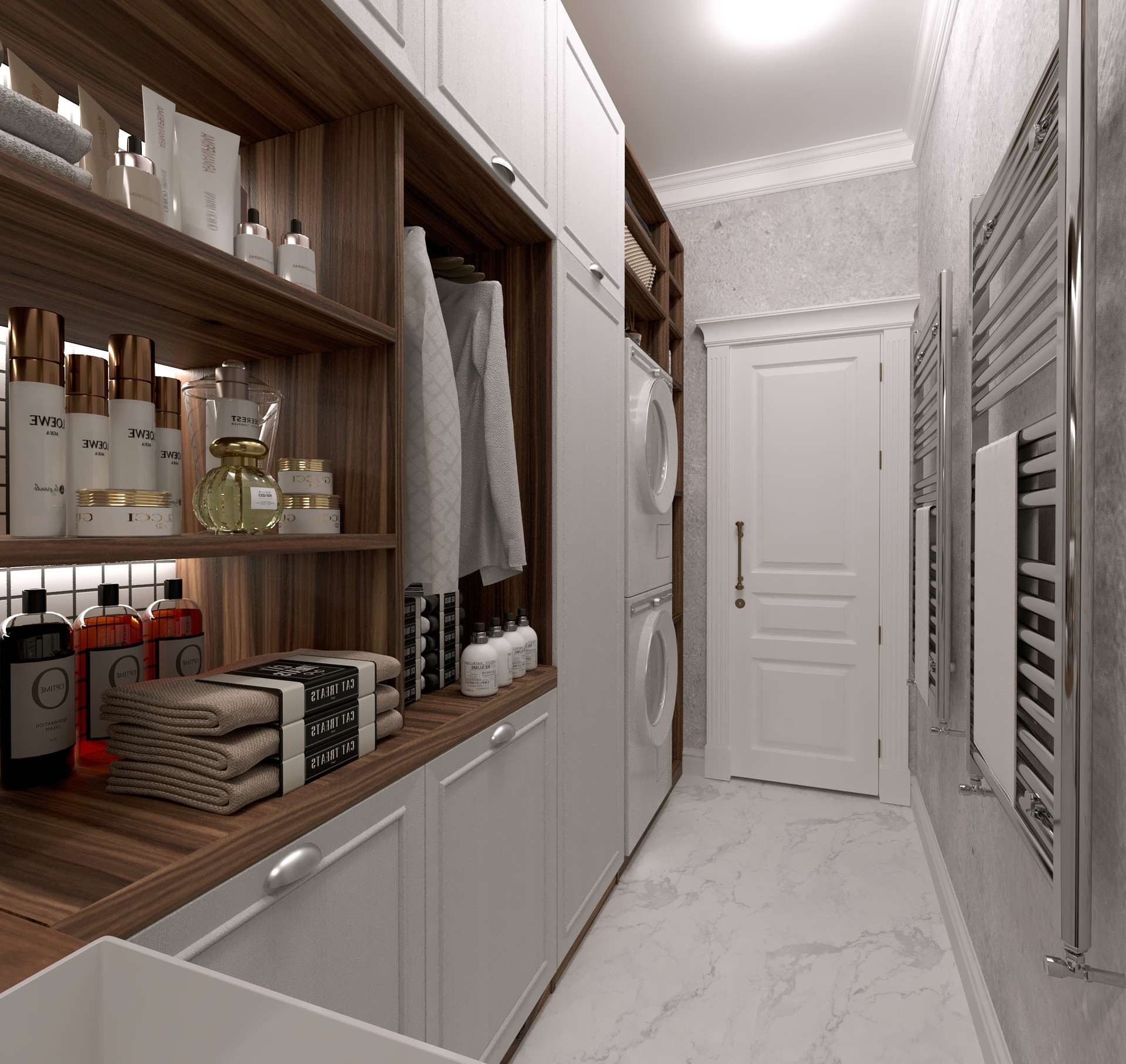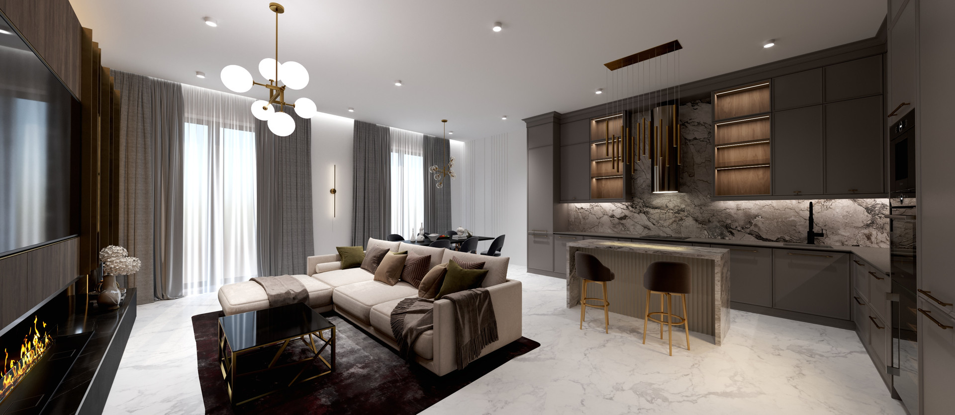 Специально для вас мы разработали дизайн проект этой квартиры, который отвечает всем требованиям современного и успешного человека. В данном проекте реализована мастер-спальня с собственным сан.узлом и гардеробом, кабинет, кухня-гостинная, постирочная, гостевой сан.узел.
