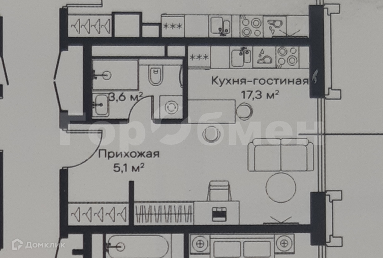 Жилая площадь 17 м2