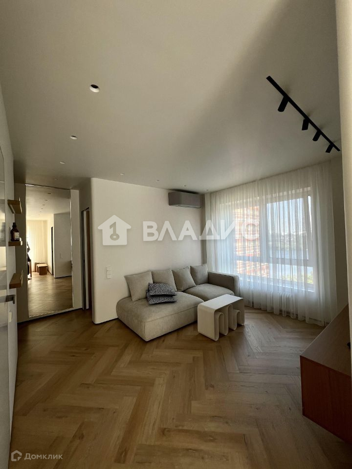 Дверь от samsung с бесключевым доступом, открывается при помощи отпечатка пальца, межкомнатные двери в квартире union. Санузел отделан плиткой, сама ванная villeroy&bosh, сантехника Hansgrohe, в стене подогрев для полотенец и встроенный шкаф для хранения, также установлен водонагреватель. Встроенный шкаф для обуви и верхней одежды. В гостиной кондиционер toshiba , модульный диван и подвесная тумба. Мойка + измельчитель omoikiri