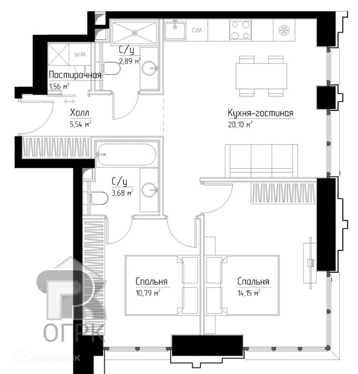 Общая площадь 58 м2