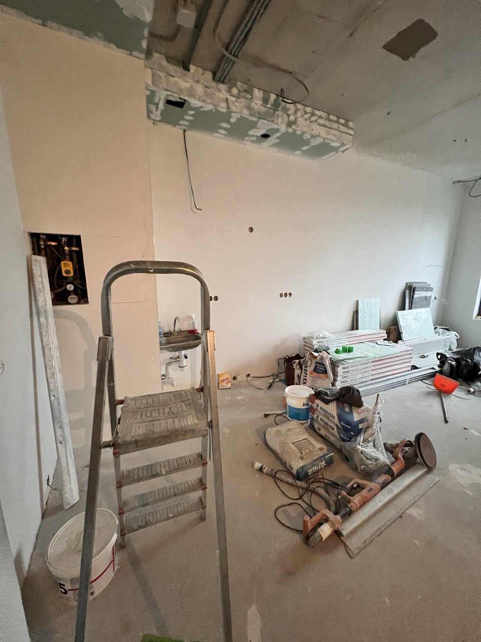 Закуплен весь комплект материалов для сана узла, включая качественную сантехнику. Межкомнатные двери, обои.