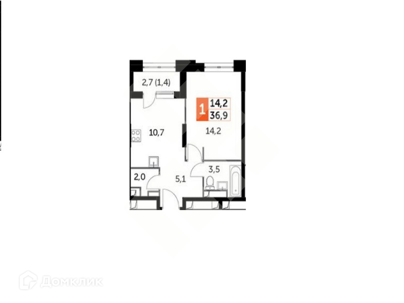 Общая площадь 37 м2