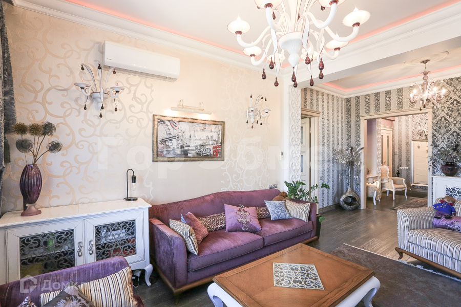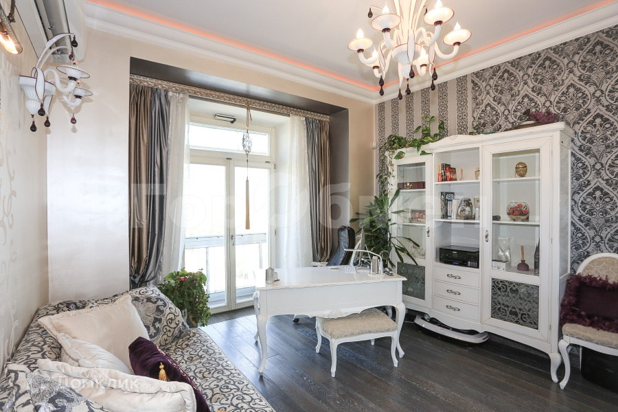 Продается 3-комнатная квартира с дизайнерским ремонтом и потрясающим видом. Окна на две стороны, вид на Кремль, Высотку на Котельнической набережной, исторический центр Москвы. Ремонт выполнен в стиле Ар-Деко с итальянским колоритом. Кухня и спальня с видом на Кремль. Гостиная и кабинет с видом на Гончарную. Совмещенный санузел, два балкона, гардеробная, кладовка. В квартире установлена итальянская кухня с мраморной столешницей и техникой MIELE, холодильник LIEBHERR. Мебель GIORGIO CASA из коллекции MEMORIE VENEZIANE. Люстры из муранского стекла. Витражи с подсветкой, контурное освещение потолков, роспись стен, лепнина. Окна с дистанционным управлением открытия-закрытия, кондиционеры, подогрев пола. Железобетонные перекрытия, высота потолков 3,25 м.