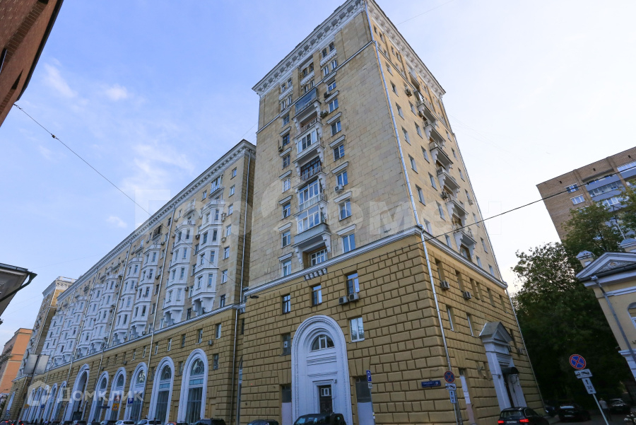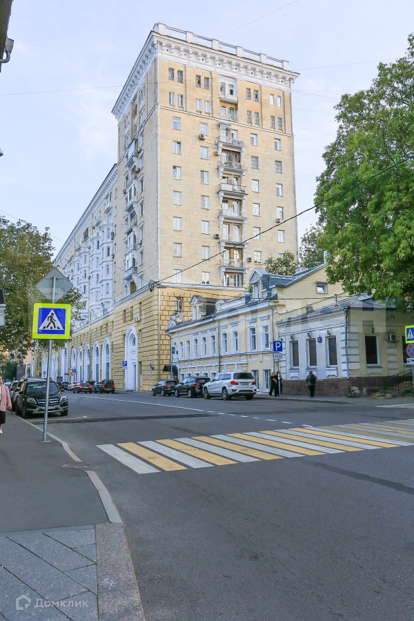 Кирпичный дом 1953-1957 года постройки для высшего командного состава ВС СССР, архитекторы Руднев и Чернявский. Монументальный, похожий на крепость, протянулся на квартал вдоль Гончарной улицы. Центральная часть дома 10-этажная с высокой аркой, а по бокам дома симметричные 12-этажные башни. Квартира расположена в северной, ближней к Кремлю башне. Парадный подъезд с колоннами, два новых лифта, консьерж. Тихий зеленый двор с детской площадкой. В доме проживали маршалы, генералы, писатели, артисты.