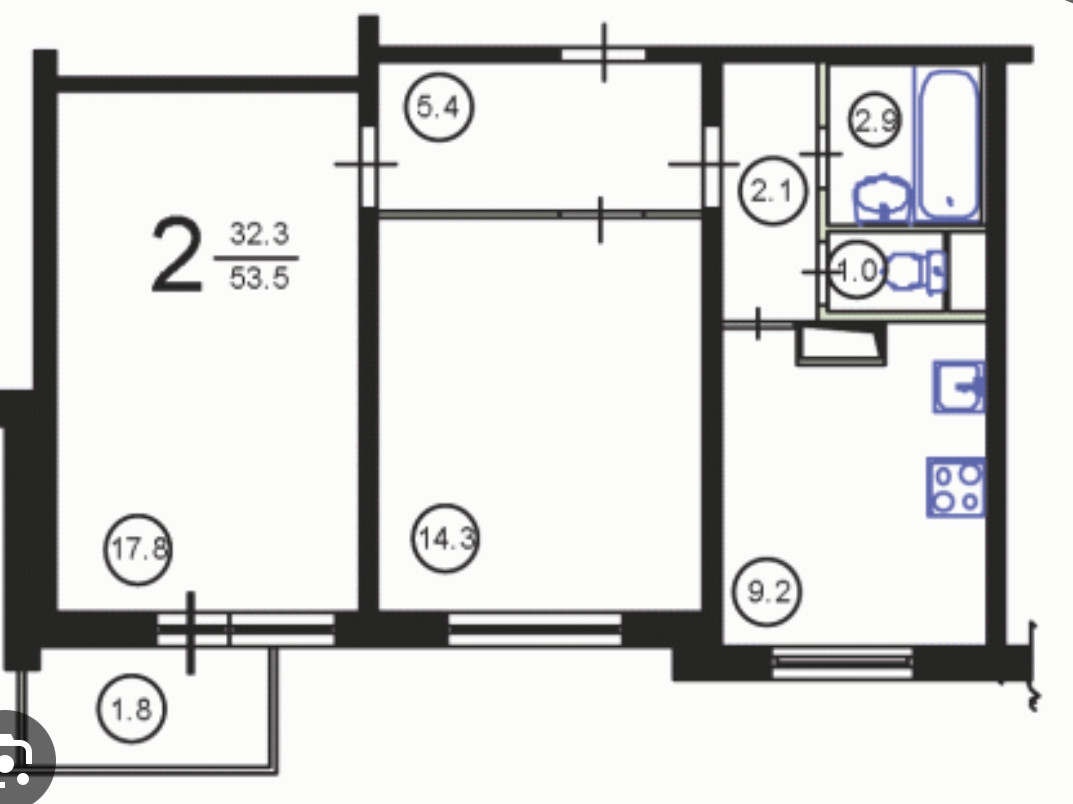 Общая площадь 53.7 м2