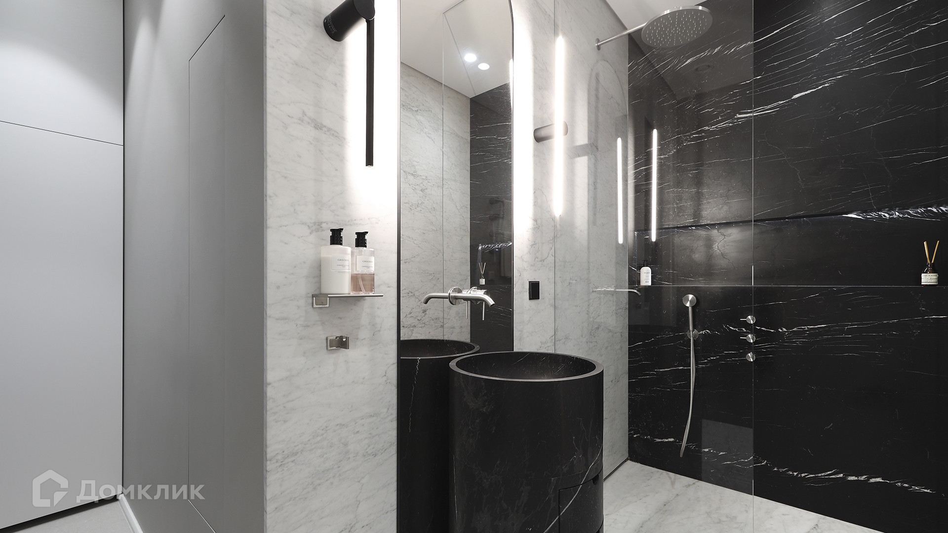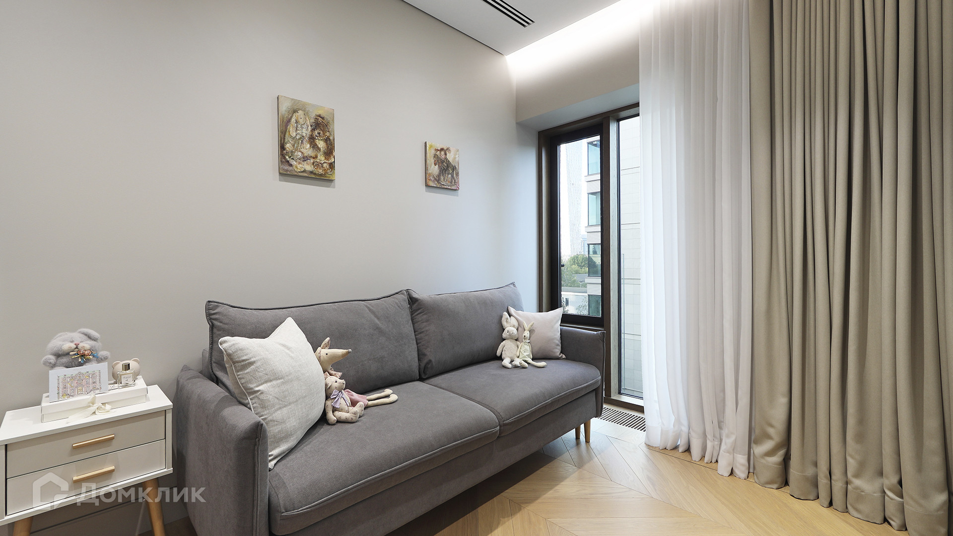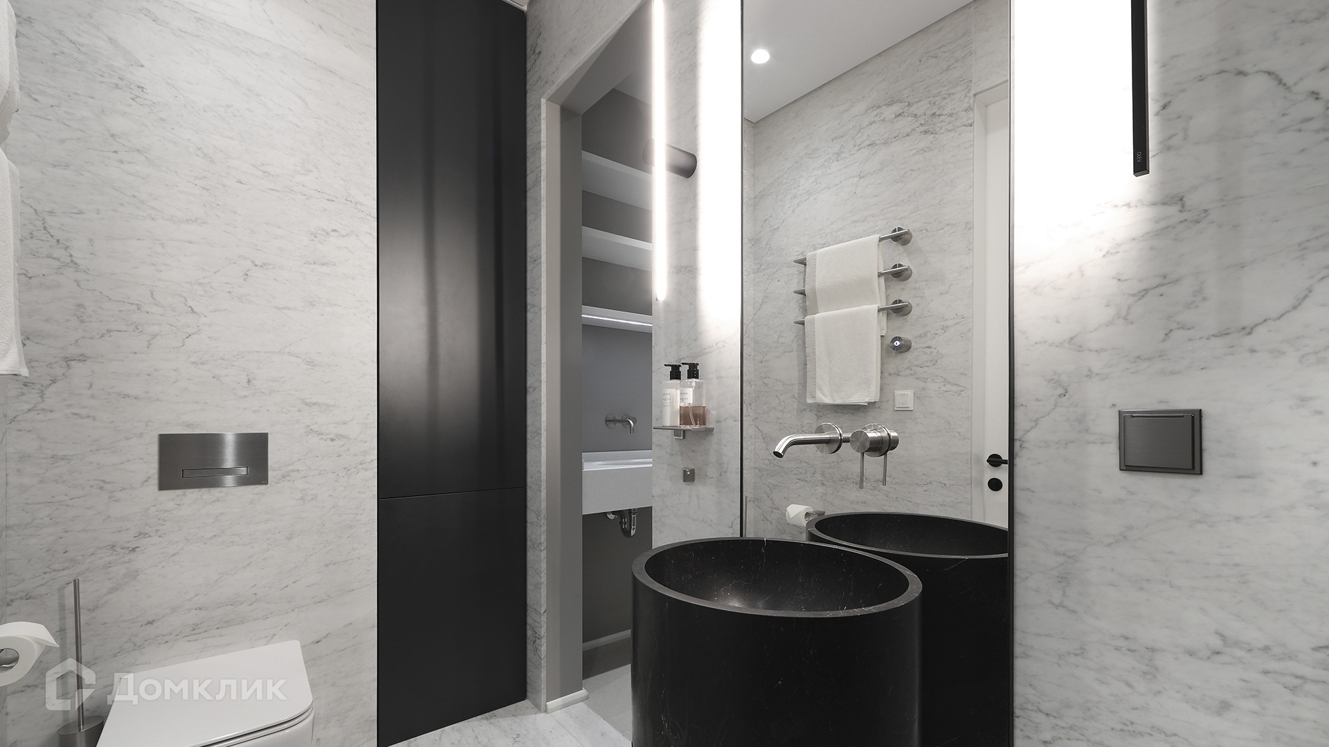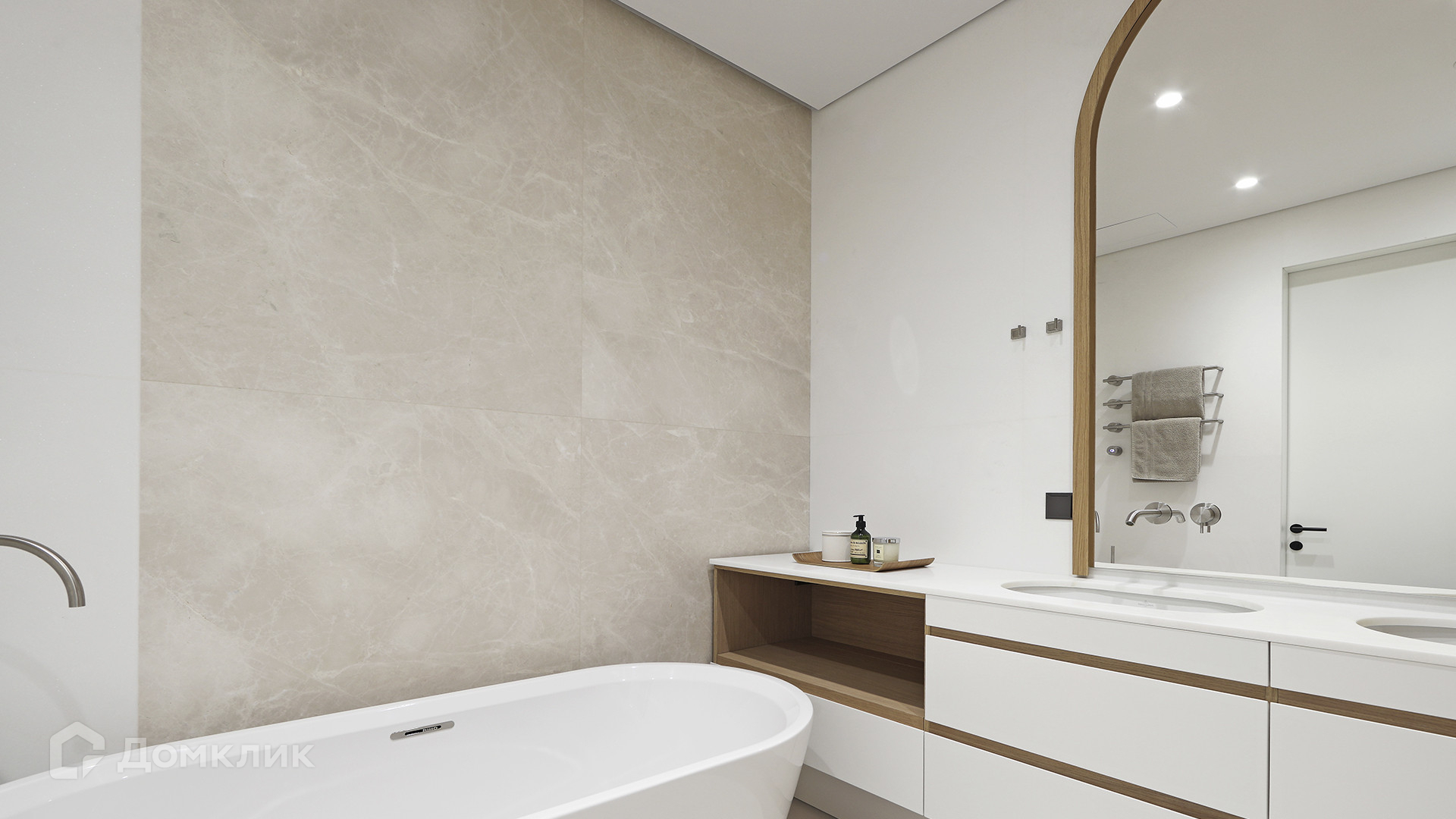ID 225 070. Дизайнерская квартира с 2-мя спальнями комплексе премиум-класса «Вишневый сад». Выполнена премиальная отделка в стиле современной классики, не от застройщика. Натуральный мрамор из Италии, Испании и Греции — Calacatta, Nero Marquina, Polaris. Инженерная доска из дуба Bonum. Панорамное остекление, виды на внутренний двор и «Москва-Сити». Высота потолков 3,5 метра.