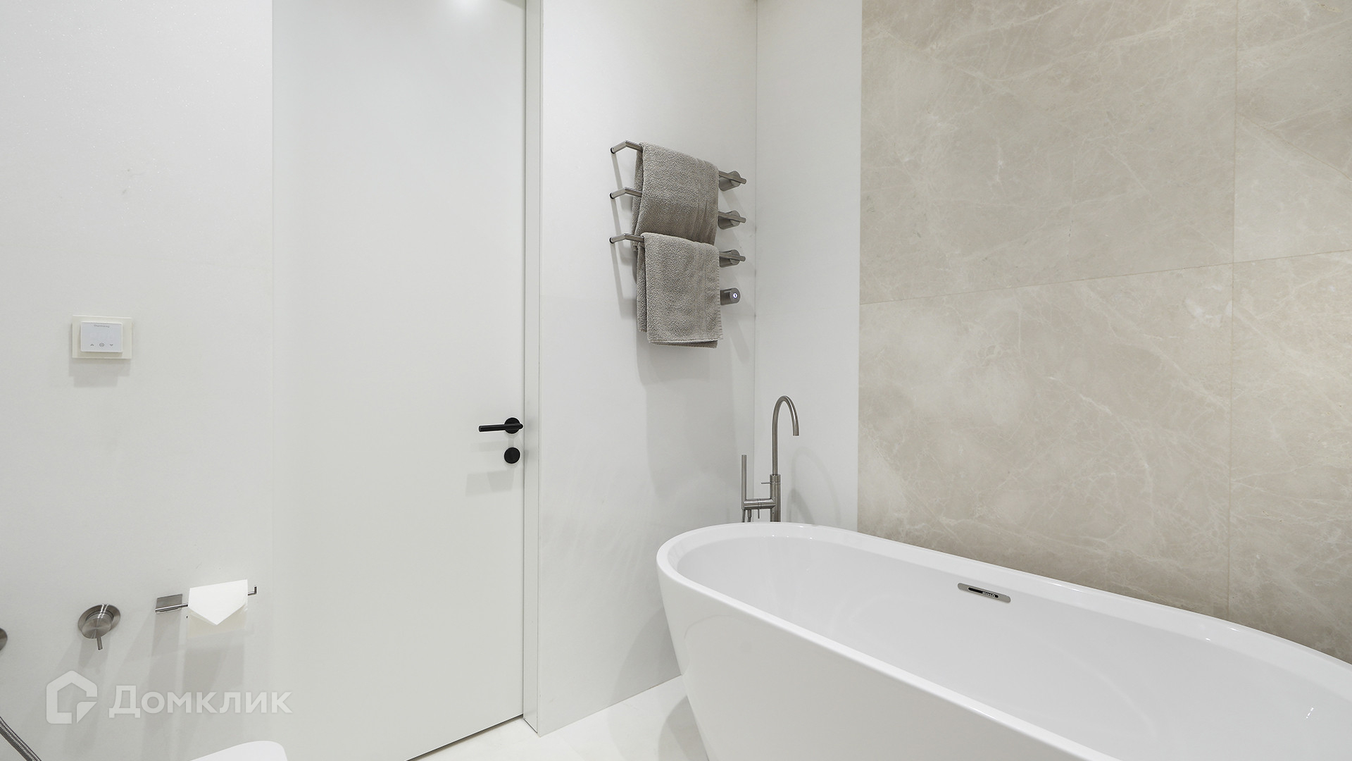 Планировка: просторная кухня-гостиная, мастер-спальня с собственной гардеробной комнатой и санузлом, вторая спальня или кабинет, гостевой санузел и постирочная. В прихожей дополнительная большая система хранения. Центральное кондиционирование Mitsubishi, система «умный дом», тёплые полы в санузлах. В подземном паркинге машиноместо с удобным расположением и возможностью зарядки электрокара.