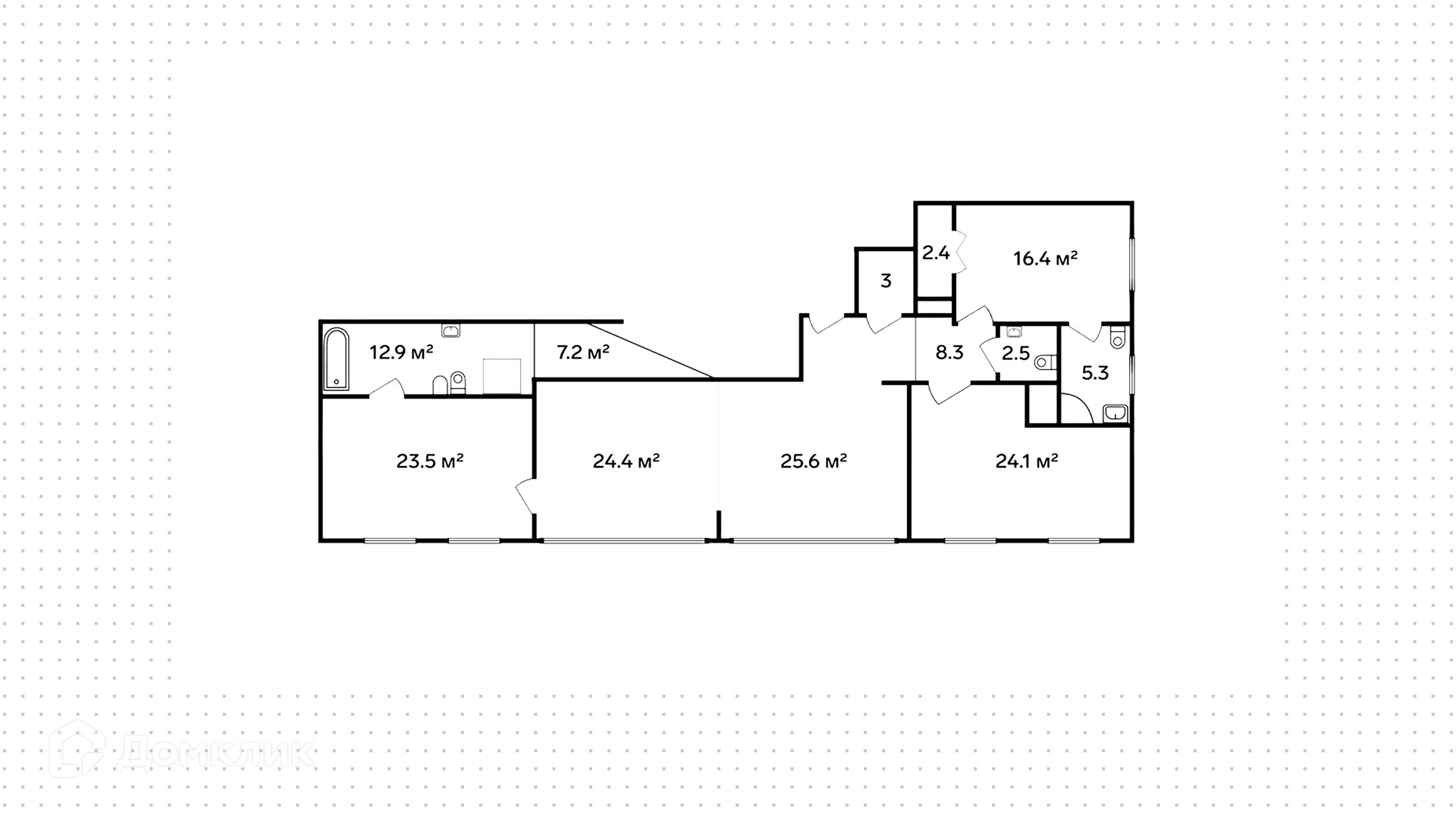 Санузел 2 совмещенный и 1 раздельный