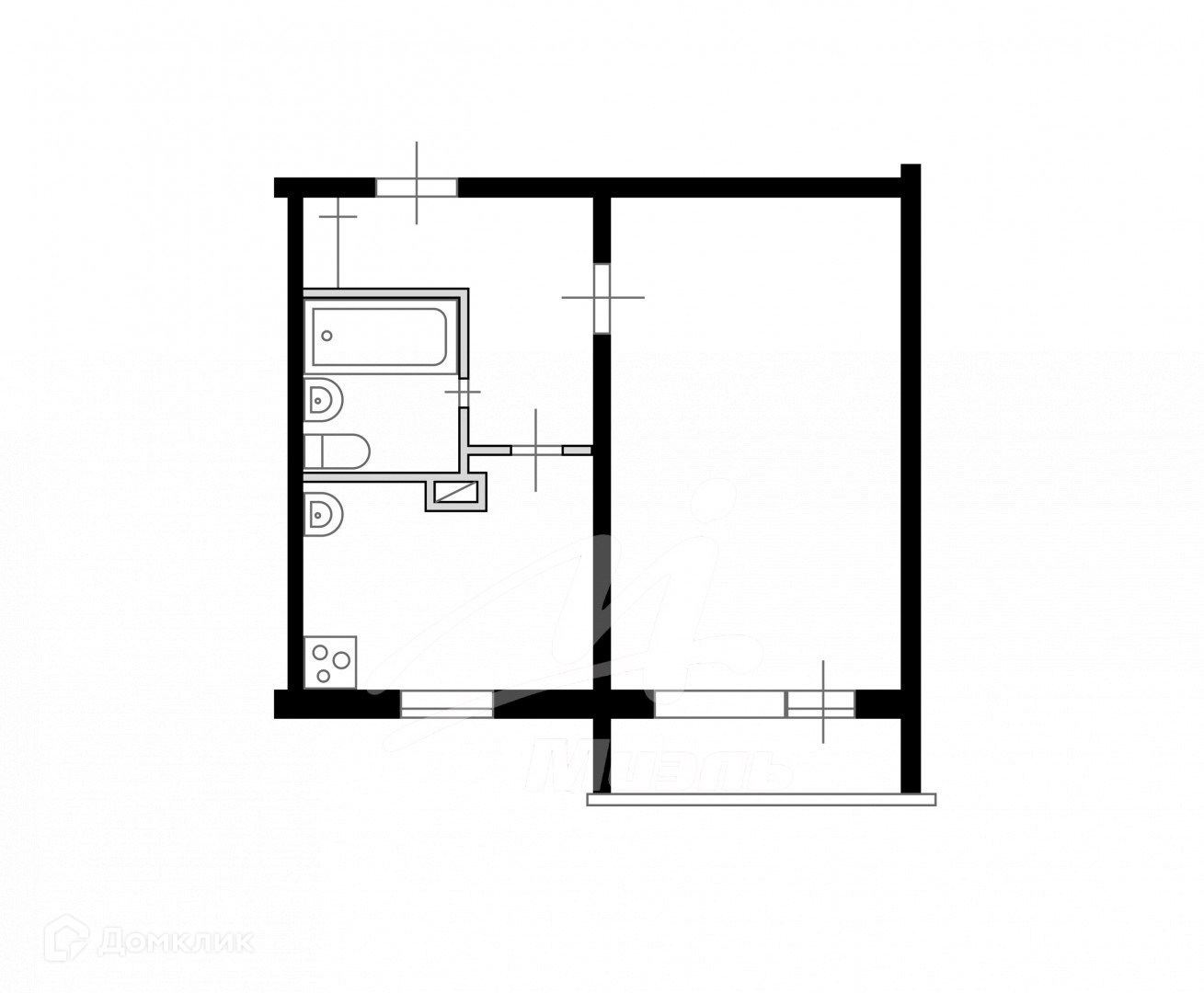 Балкон, лоджия 1 балкон