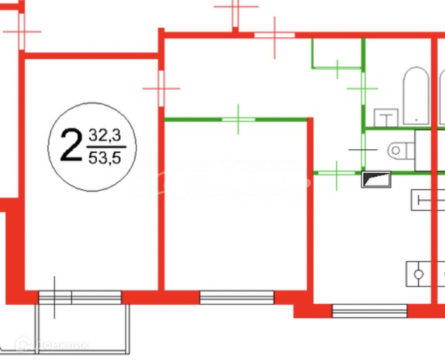 Общая площадь 53.6 м2