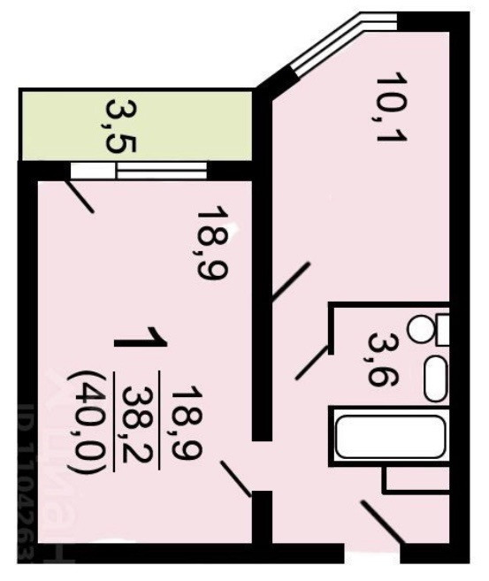 Общая площадь 40 м2
