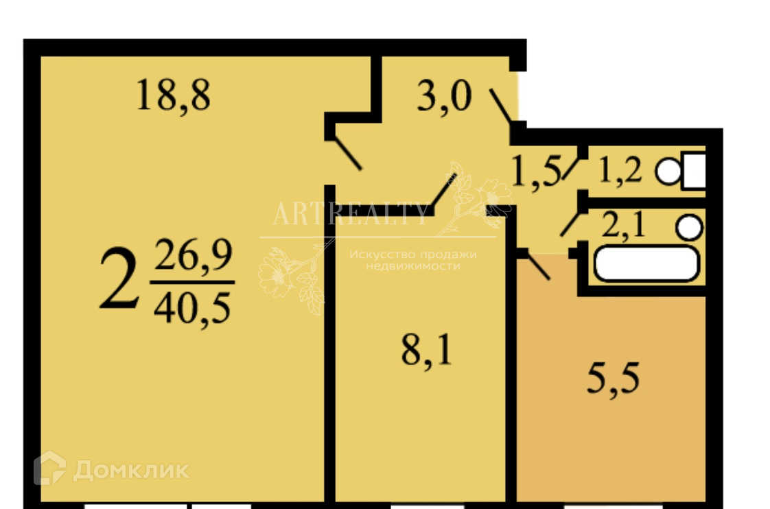18,8+8,1 кухня 5,5.. С/у раздельный.