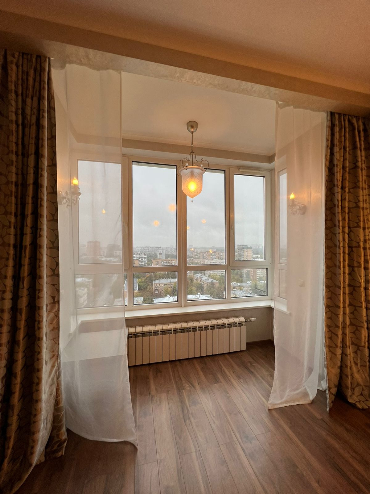Спальня (20 кв.м.) совмещенная с лоджией. Панорамное остекление эркера дает возможность любоваться городом и Измайловским парком.