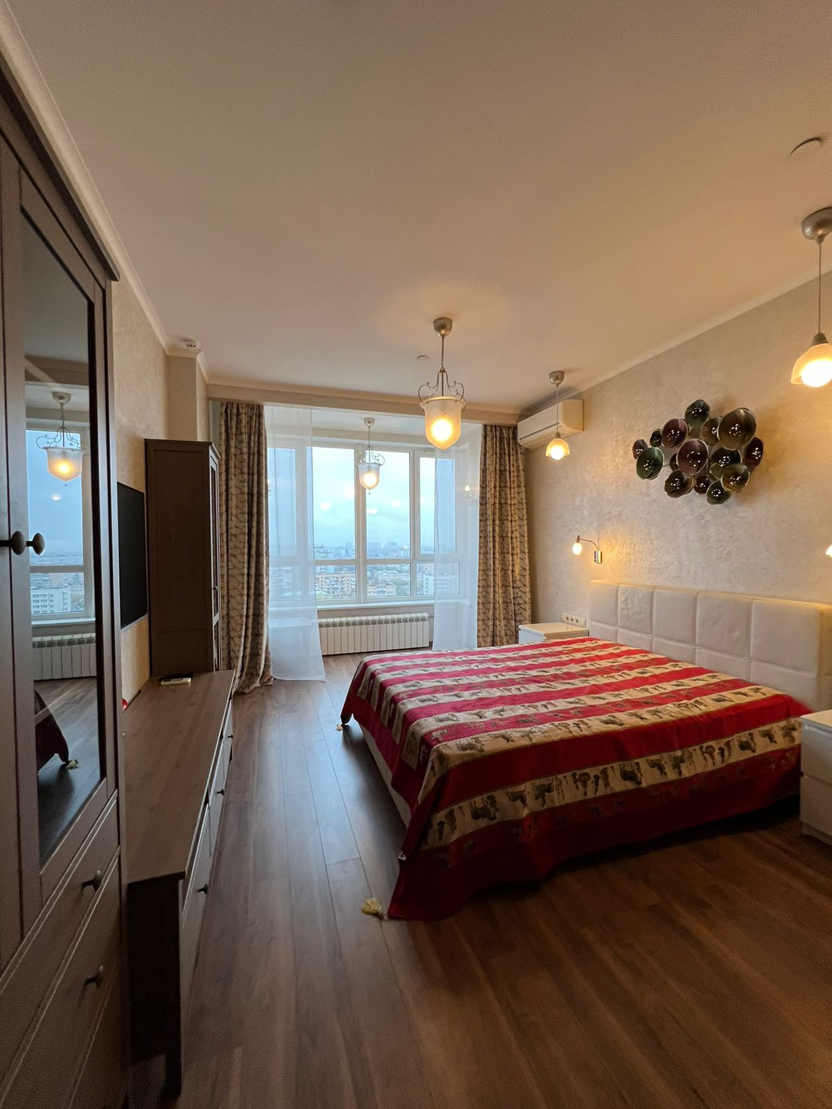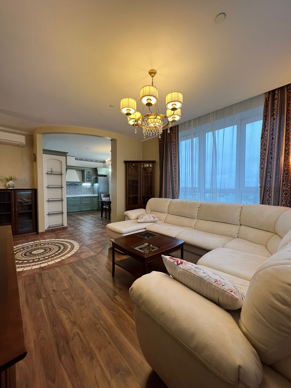 Общая площадь квартиры 98,2 кв.м., распланирована и изменена по индивидуальному проекту. Высота потолков – 3 метра. Из окон открывается красивый вид на город, кухня и часть гостиной - север, спальни - восток (жарко не бывает).