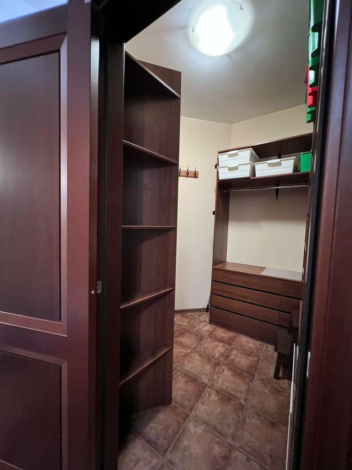Вместительная гардеробная, с продуманной системой хранения.