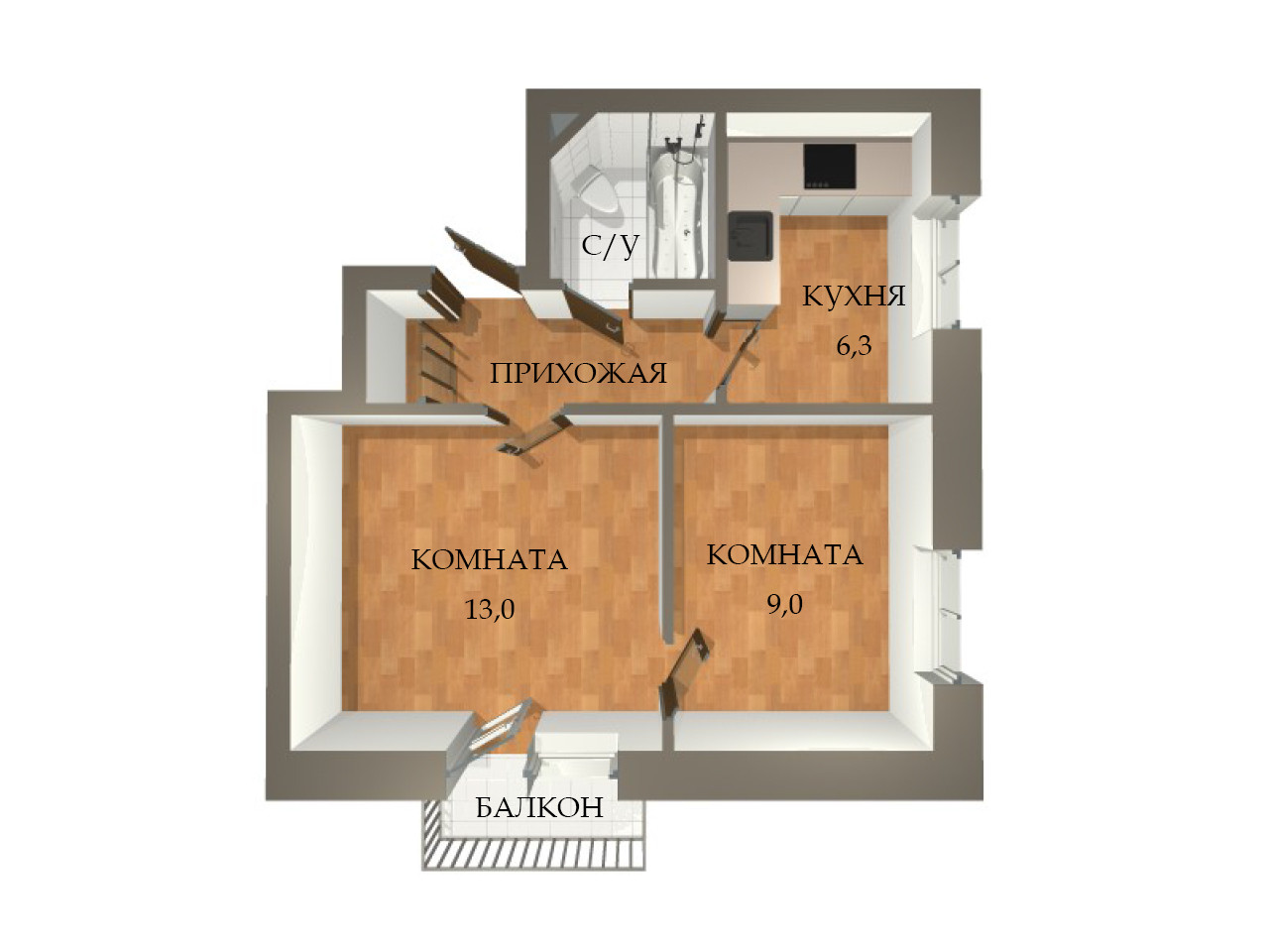 Площадь кухни 6.3 м2