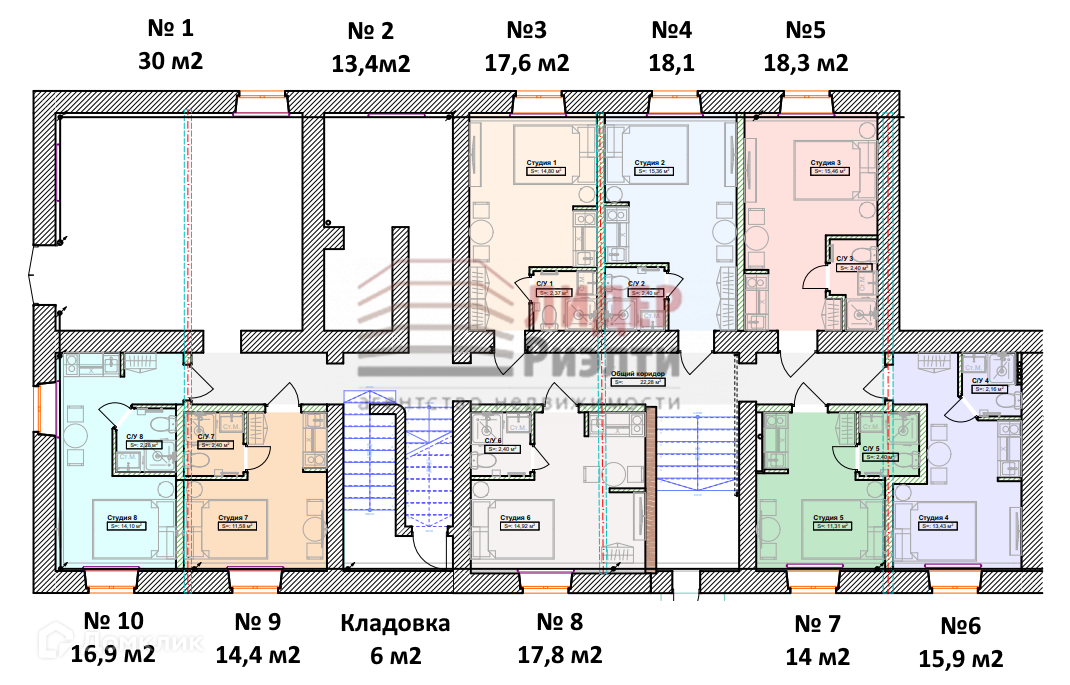 Общая площадь 13.4 м2