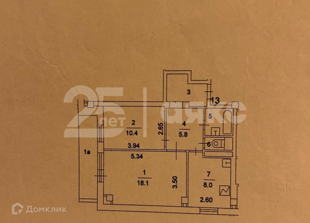 Общая площадь 50.2 м2