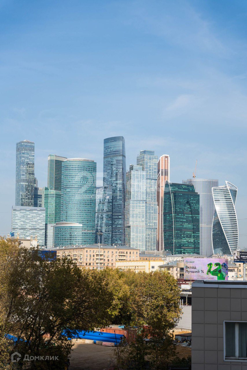 Окна выходят на бизнес-центр "Москва Сити".