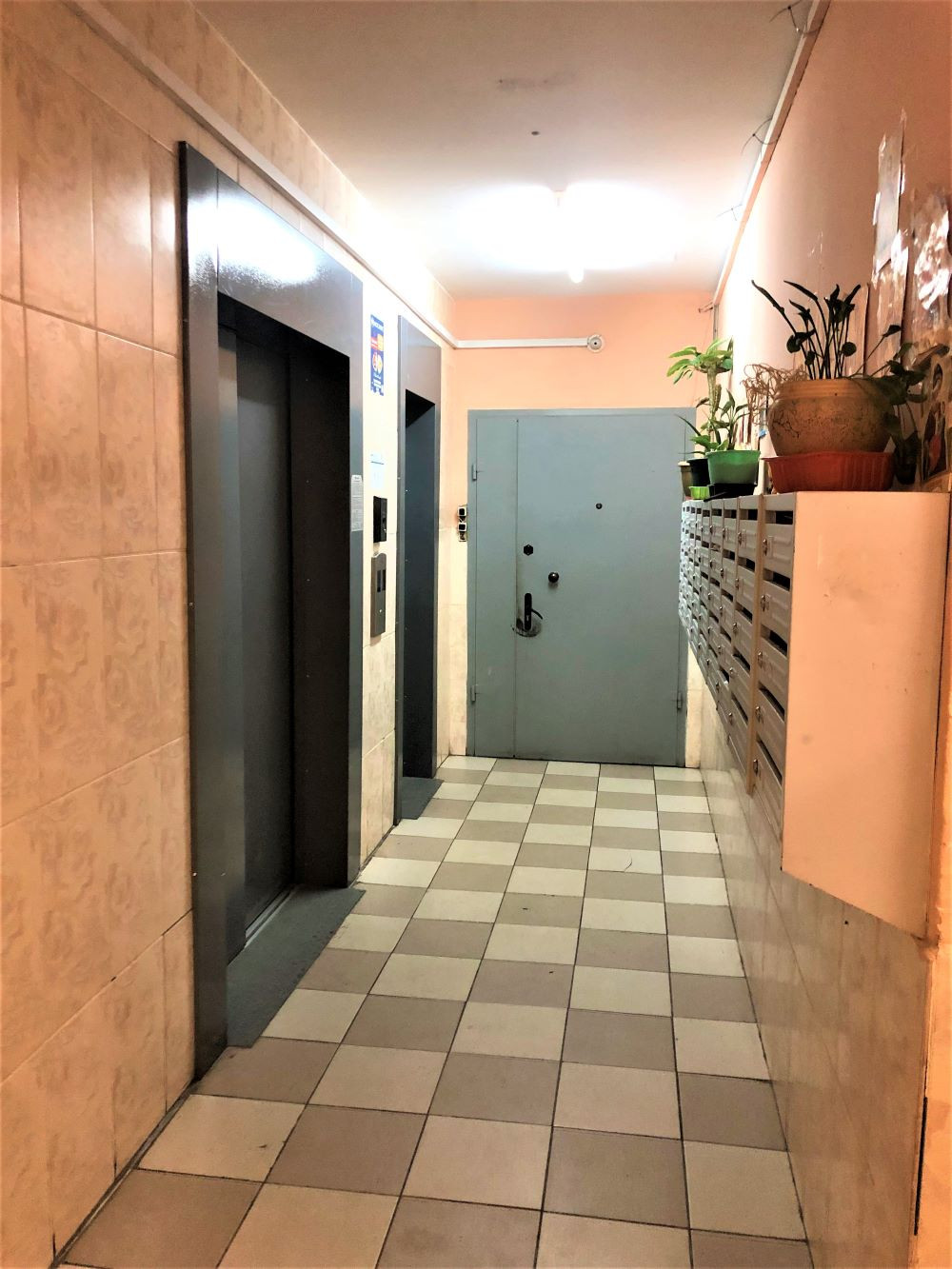 На этаже совместными усилиями на полу проложена качественная плитка, что дополнительно подтверждает сплоченность и добропорядочность соседей.