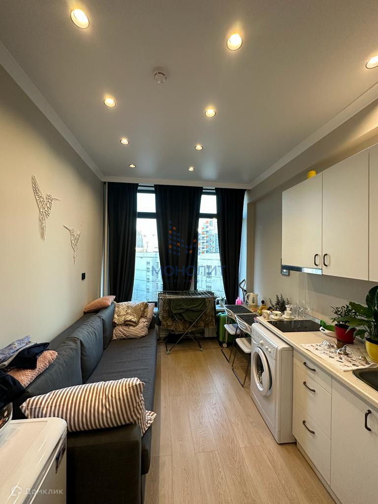 Студия с дизайнерским ремонтом в 10-этажном здании после реновации. В апартаментах остается все, мебель, техника.