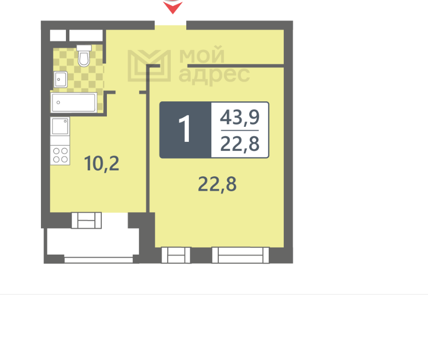 Общая площадь 43.9 м2