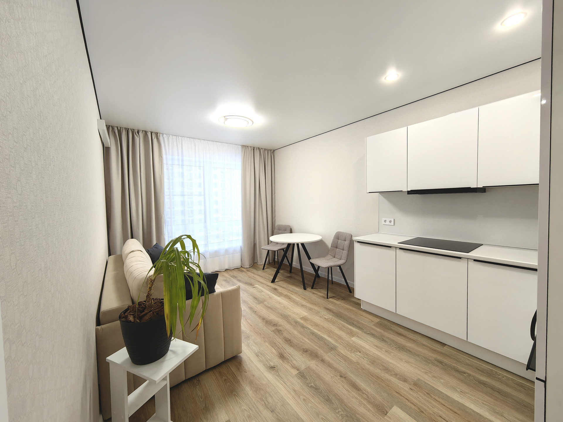 Большая кухня-гостинная, просторная спальня, функциональная гардеробная, большой совмещенный санузел с водонагревателем.