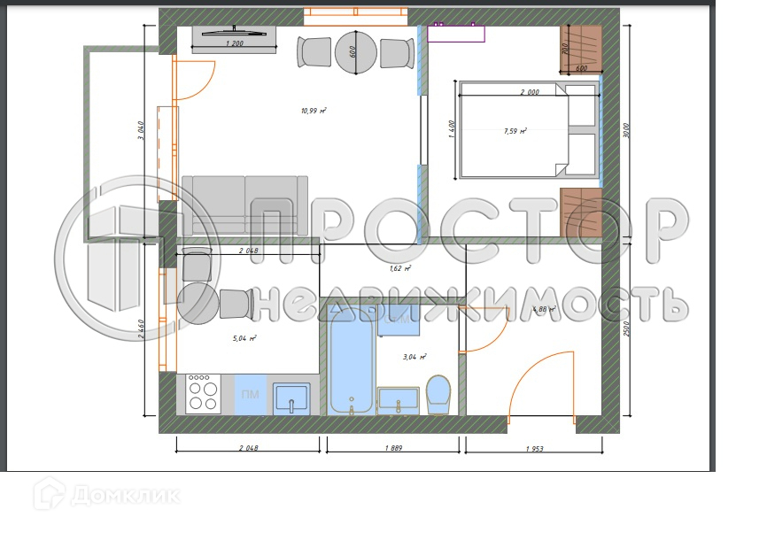 Общая площадь 31 м2