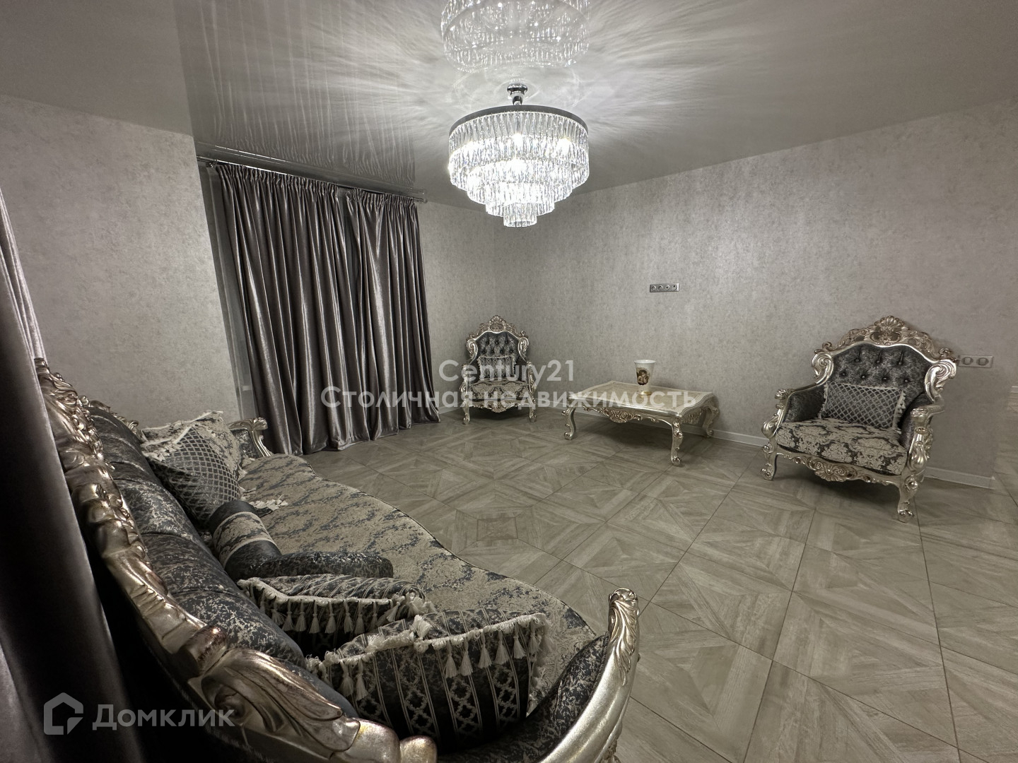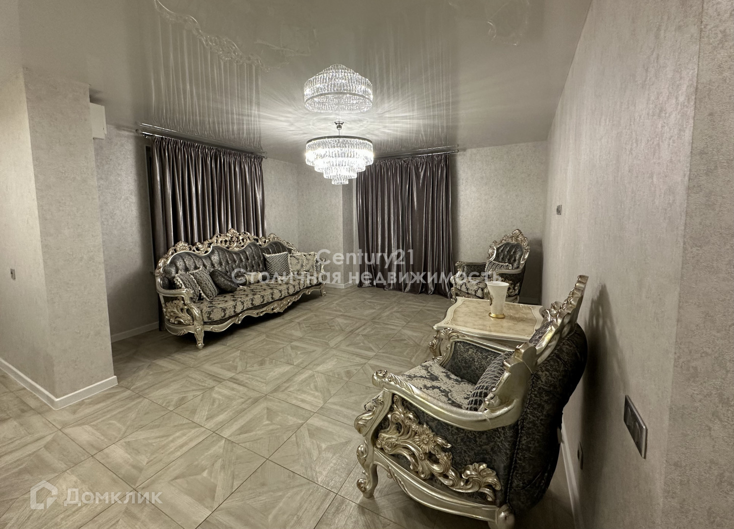 Шикарная гостиная с диваном, 2я креслами и журнальным столом.