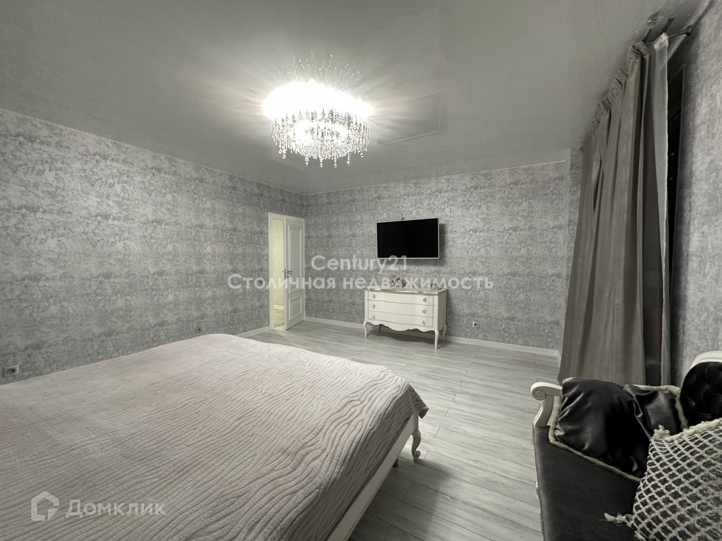 Все двери в квартире от Leganza и во всех комнатах есть роскошные люстры.