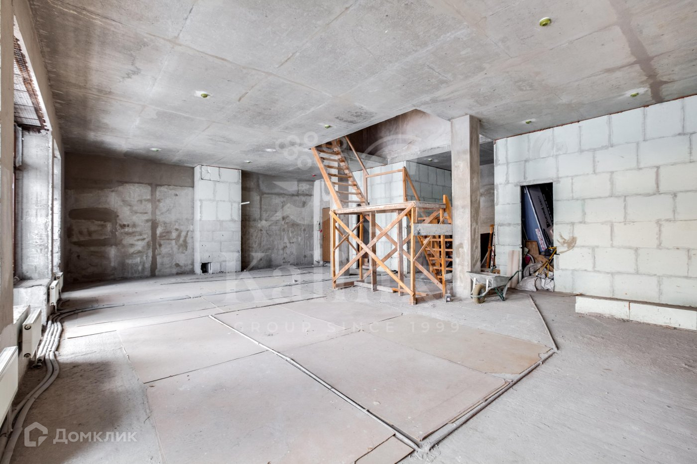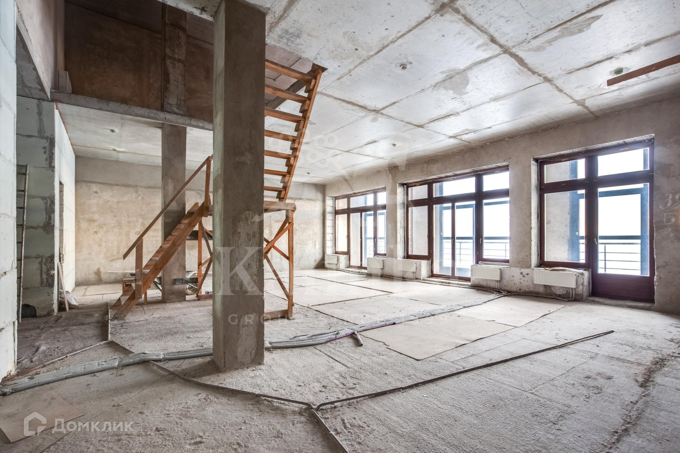 Возможно спланировать: кухня-столовая-гостиная, 2 спальни с собственными ванными комнатами, кабинет, гостевой санузел.