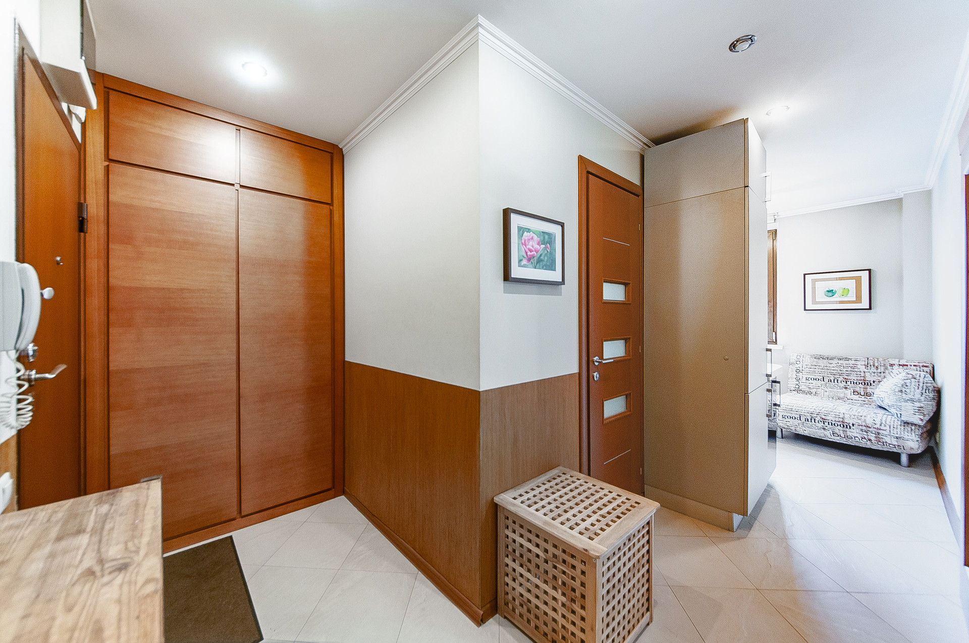 Угловая квартира, соседи только по одной стене.