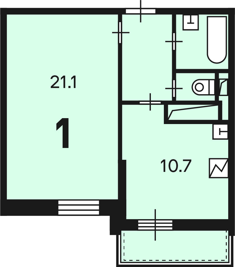 Жилая площадь 21.1 м2