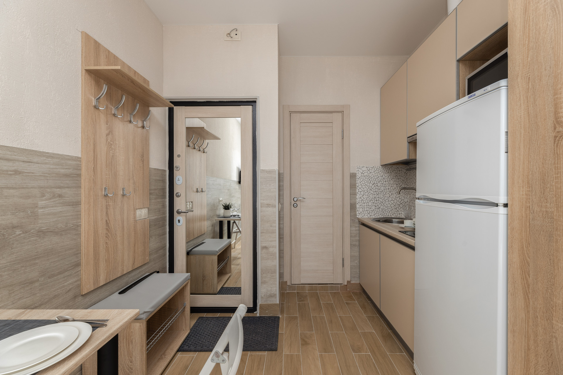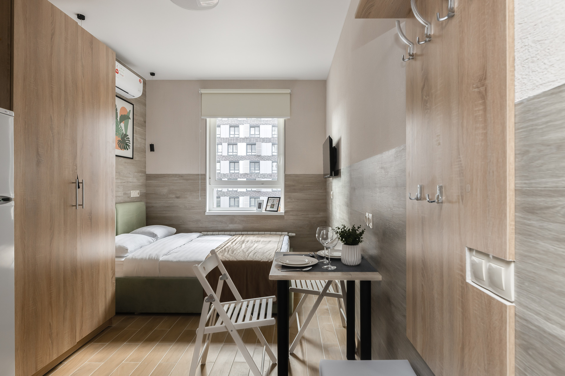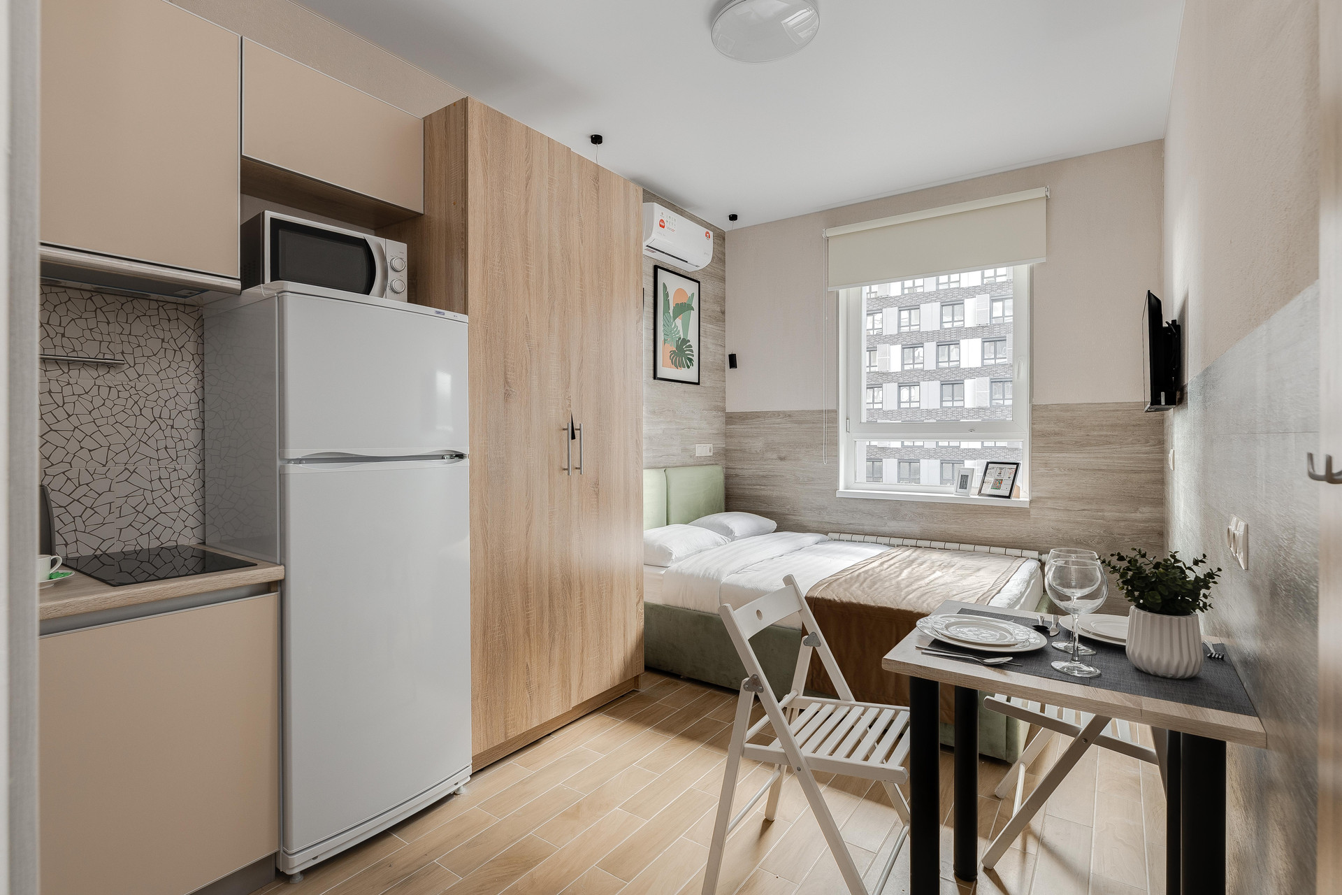 м. Спартак, м. Тушинская (3 минуты пешком). ЖК Движение.Тушино. Волоколамское ш. 71/22к3., подъезд 1, этаж 4, апартаменты 30/4 (кад.номер: 77:08:0015001:18501 - 17,6кв.м.) + часть коридора (1кв.м.) = площадь студии 18,6кв.м. Окна на улицу, закрытая территория, охрана, консьерж. Евро-ремонт с мебелью и техникой под ключ (кроме кухонных принадлежностей, постельного белья, телевизора).