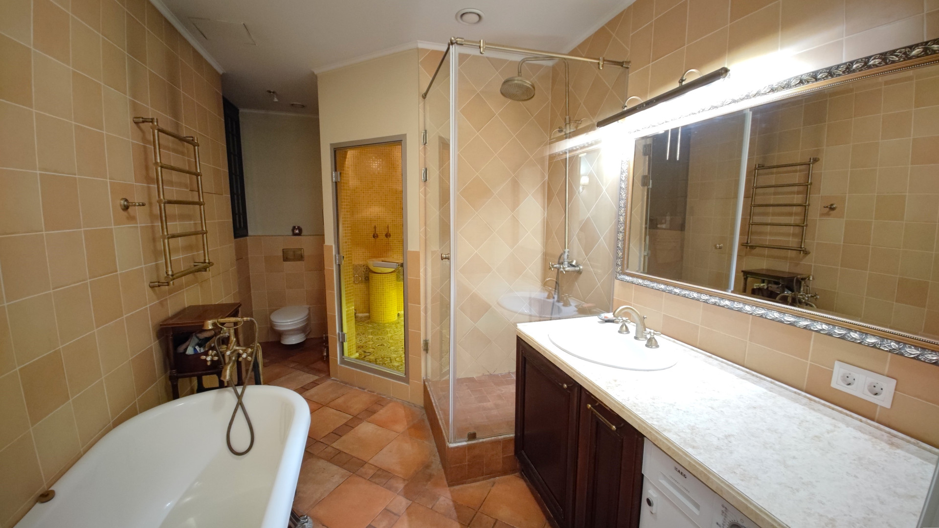 В квартире выполнен дизайнерский ремонт из лучших европейских материалов, установлены деревянные стеклопакеты с энергосберегающими окнами, под плиткой смонтированы теплые полы, на полу паркет из массива дуба, санузел отделан итальянской плиткой, хамам из натурального мрамора, сантехника Villeroy & Boch.