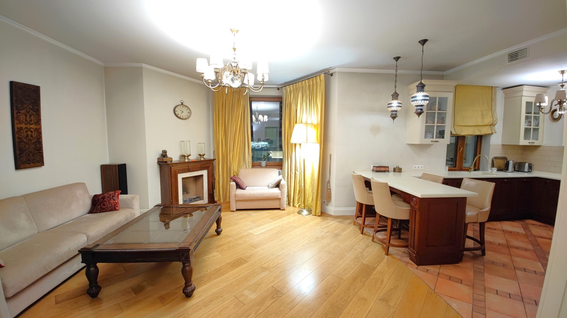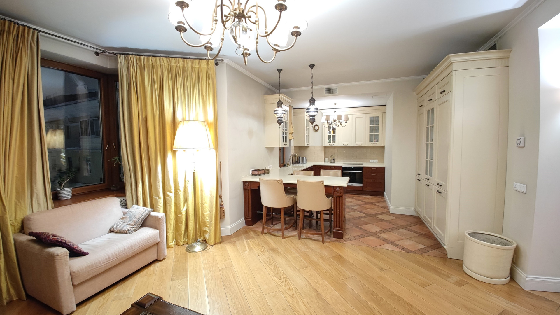 В квартире семь окон и один балкон, все выходят на тихий двор и закрытую придомовую территорию с уютной летней террасой, доступной только для жителей комплекса.