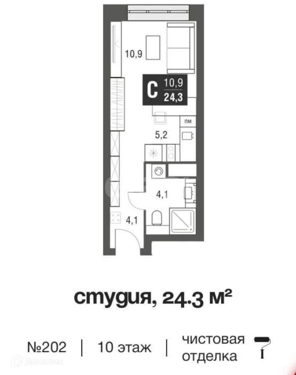 Общая площадь 24.3 м2