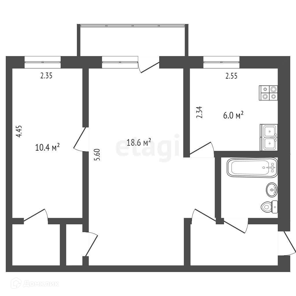 Общая площадь 44 м2