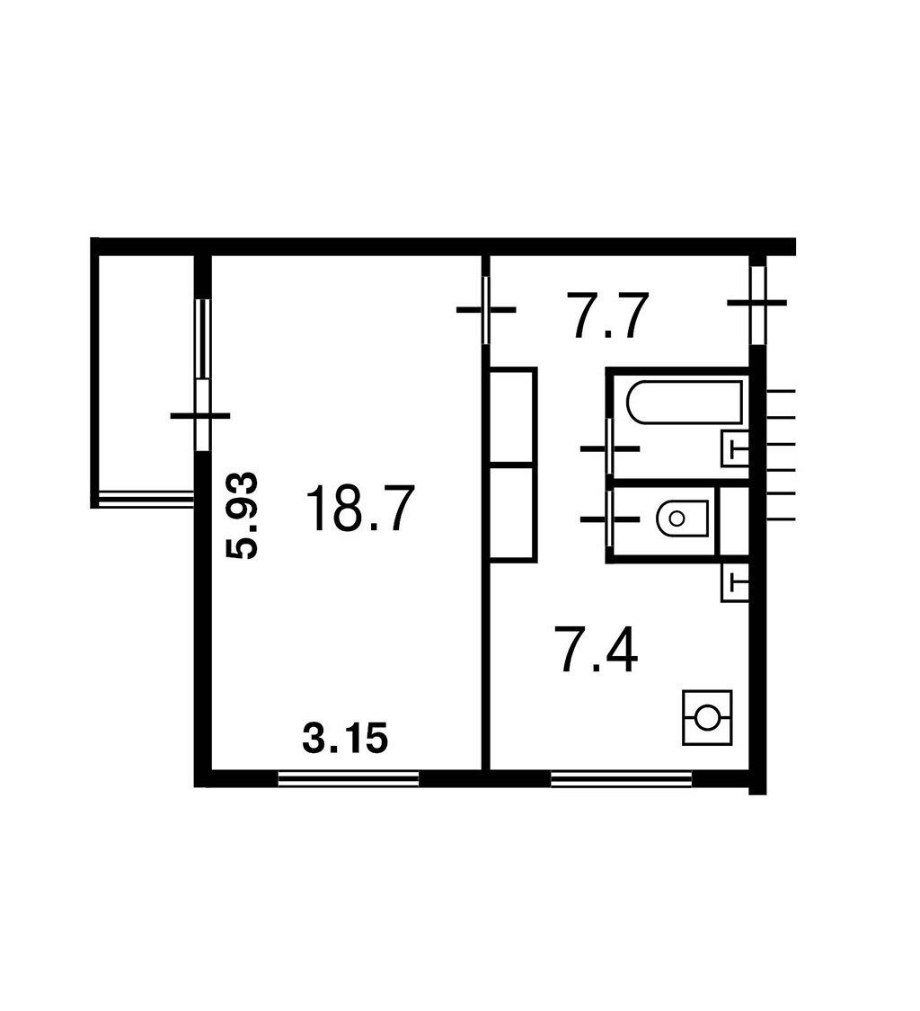 Жилая площадь 18.7 м2